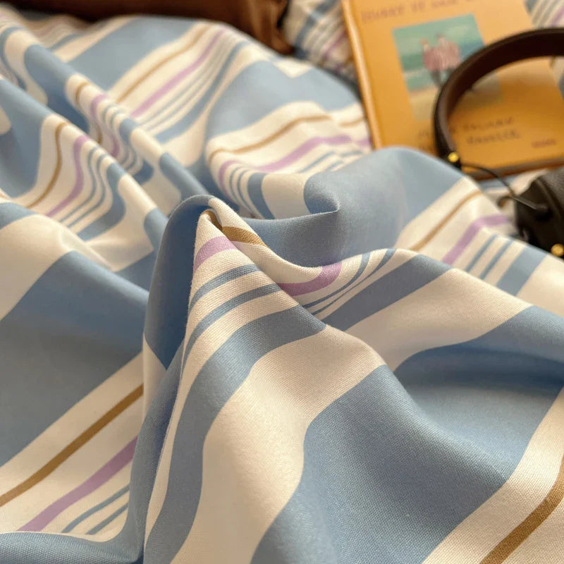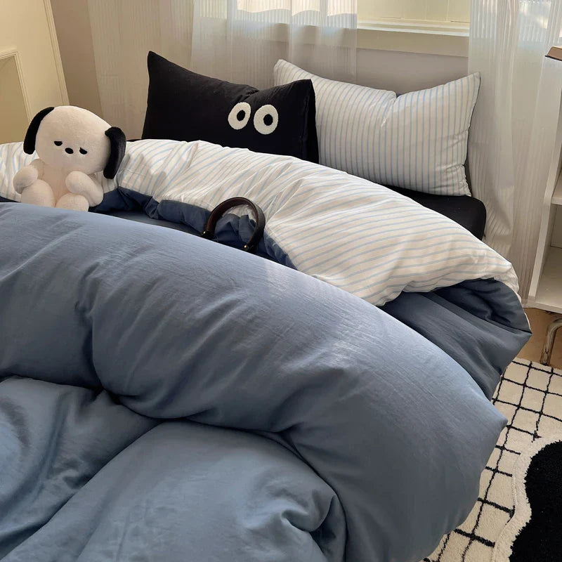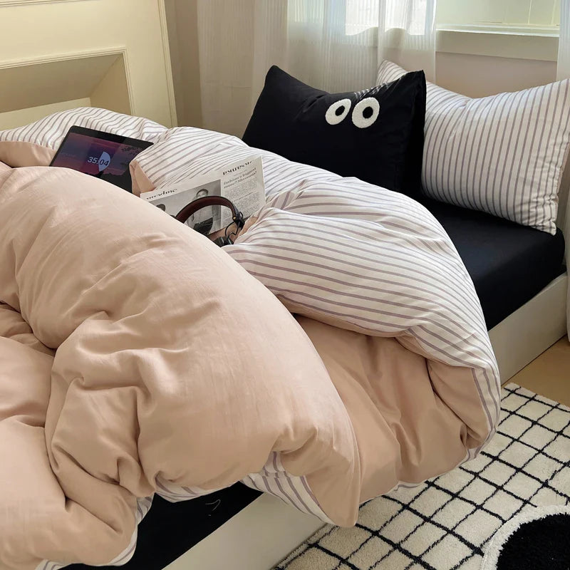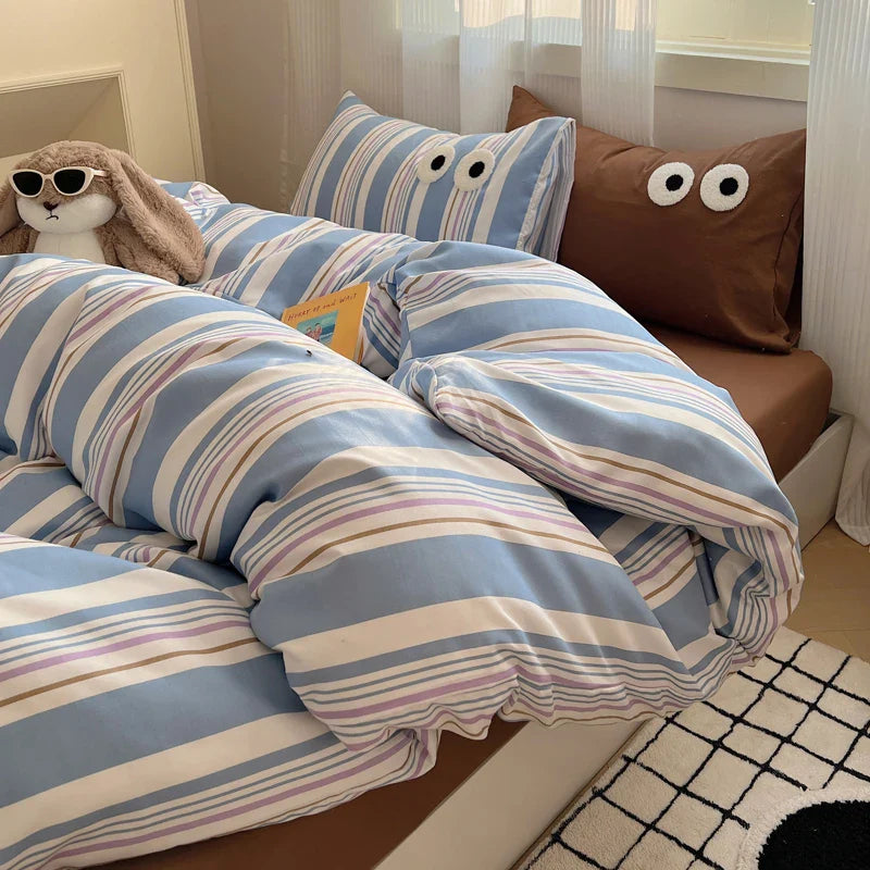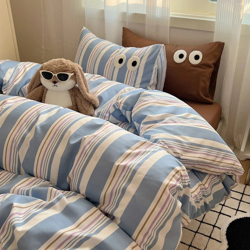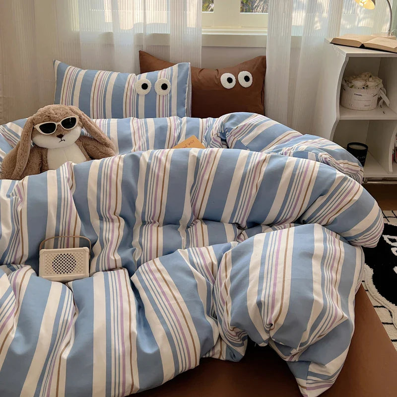 Korean Bed Linen Bedding Sets Stripes Duvet Cover Set Quilt Cover Bed Sheet Quilt Sets Queen Size INS Blogger Comforter Sets