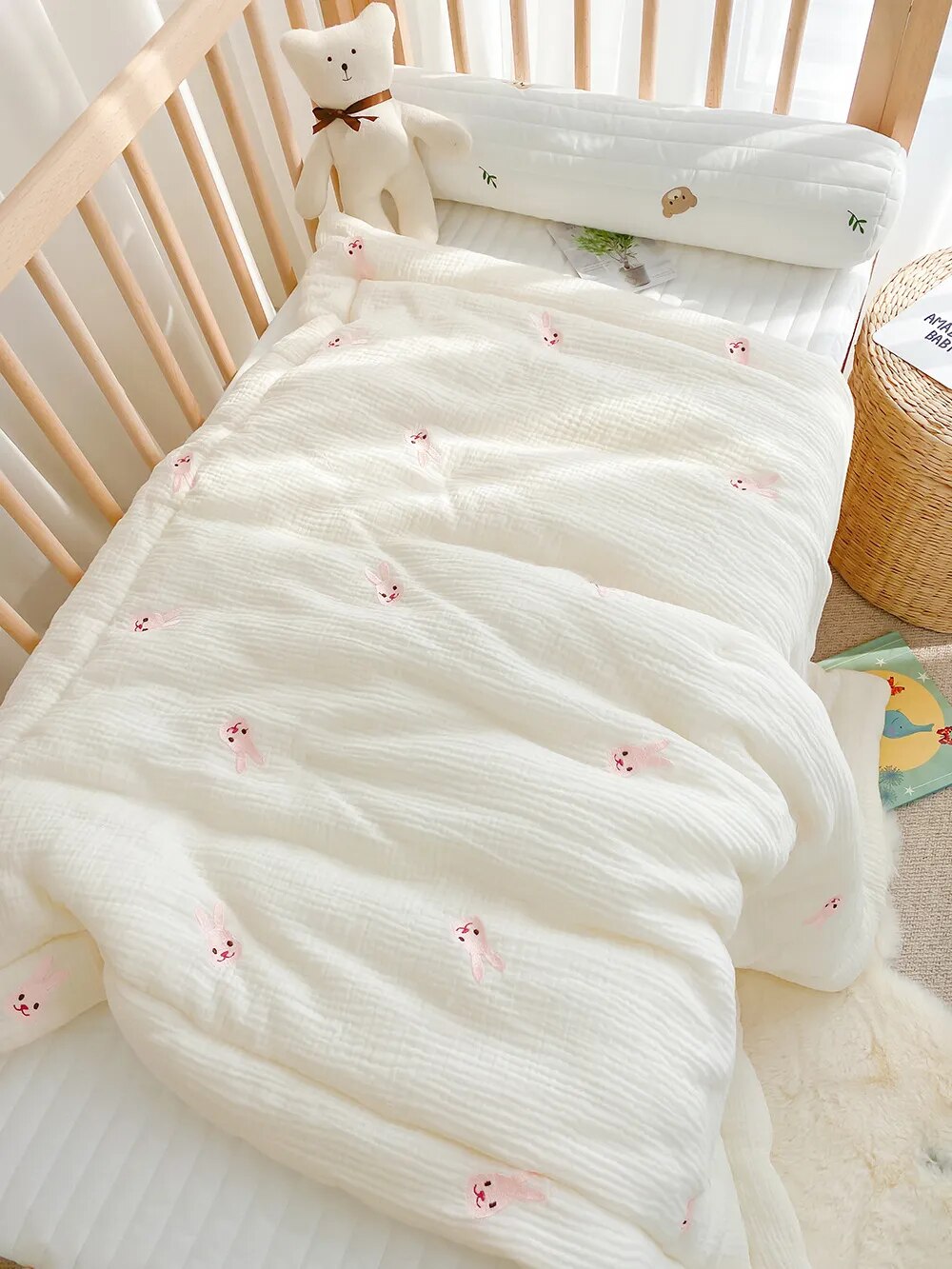 Dropshipping Korean Cream Baby Quilt Pure Cotton Mink Blanket Baby Four Seasons Warm Soft Wool Swaddle Wrapped Bedding 1.2x1.5M