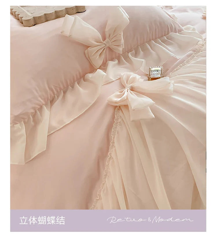 Korean Princess Style Bedding Sets Ruffle Lace Bow Quilt Cover Romantic Bedclothes Decor Woman Girls Bedroom/ Bedding Set