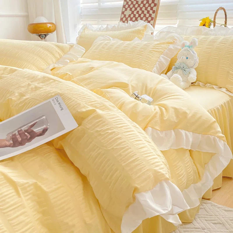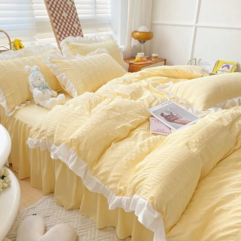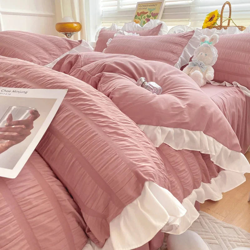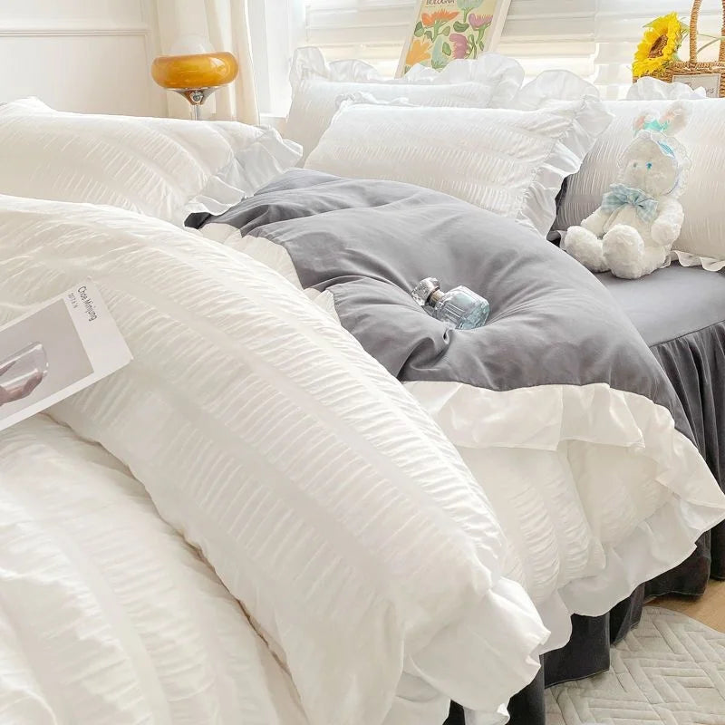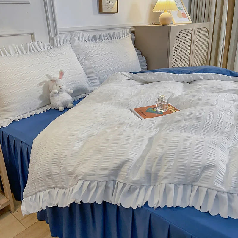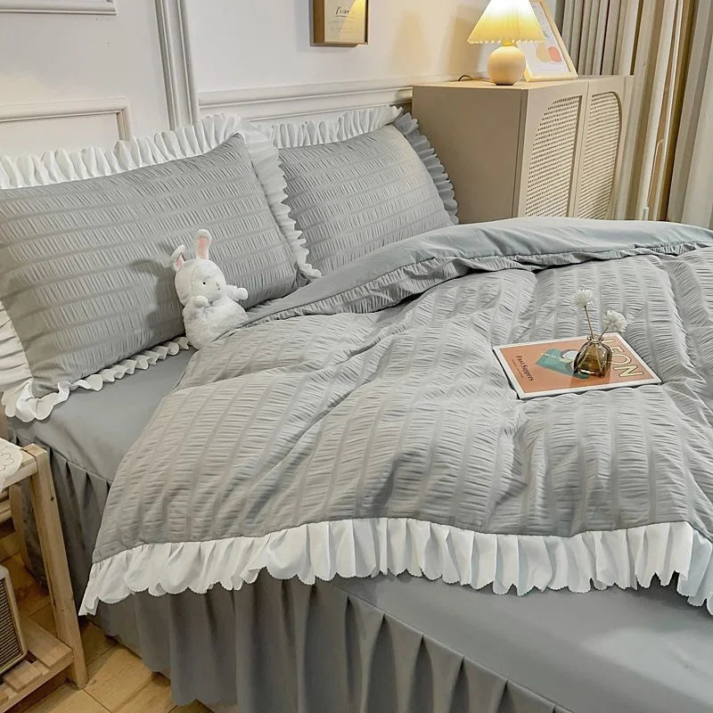 Korean Style Bedding Set Duvet Cover Flat Bed Sheet Bed Skirt Princess Style Ruffle Quilt Cover For Girls Summer Bed Linen