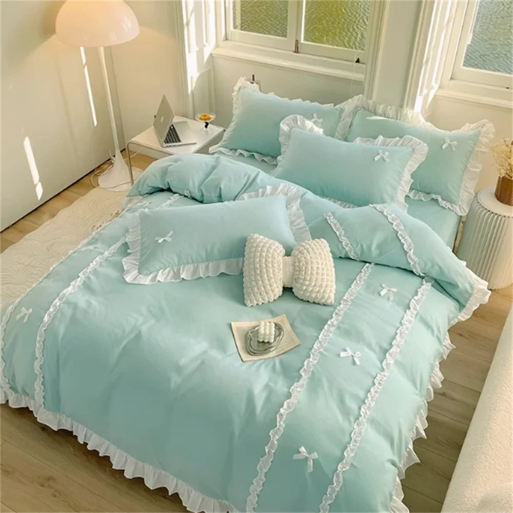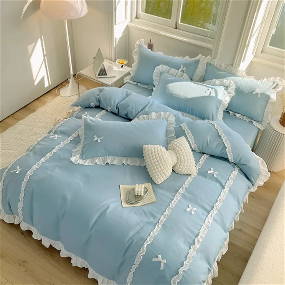 Korean Version Princess Style Four Piece Set of Cotton and Pure Cotton Butterfly Knot Duvet Cover Set Dormitory Bed Sheet