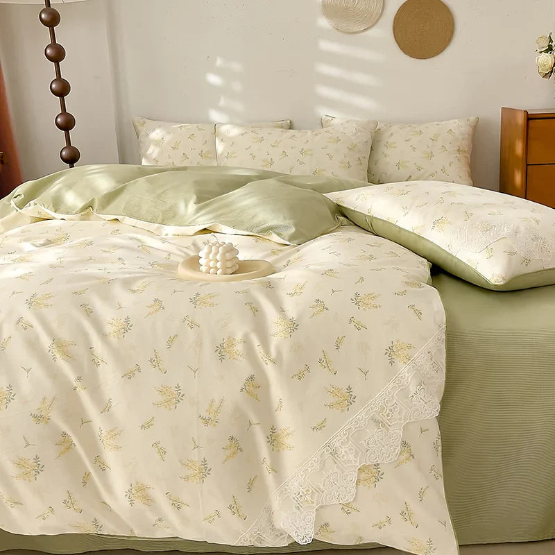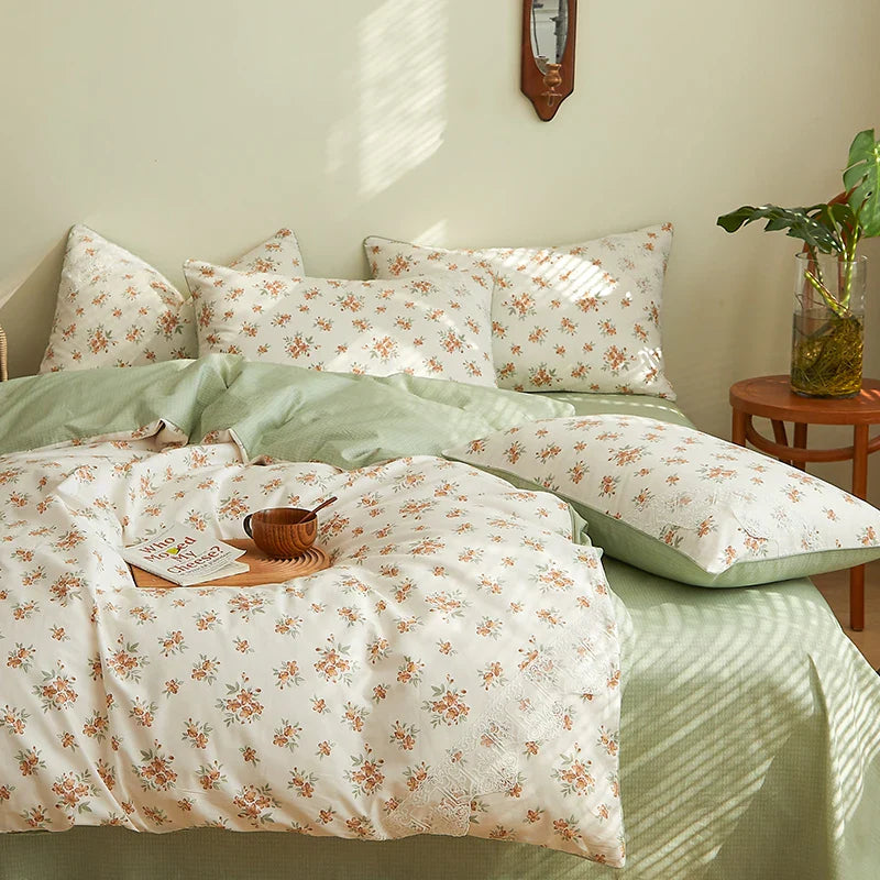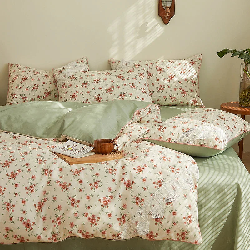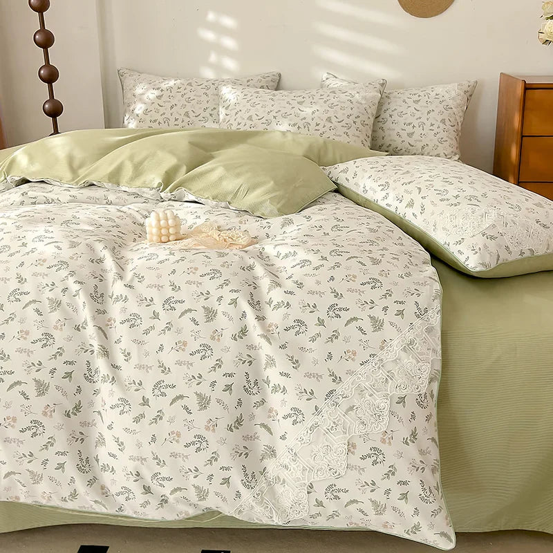 Lace Style Bedding Set Pure Cotton Bed Sheets Set Girls Room Bedclothes Skin-friendly Duvet Cover Set for Home постельное белье