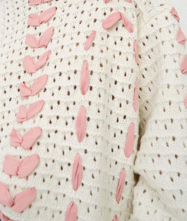Introducing the Lacey Ribbon Hollow Knitted Sweater. the perfect combination of style and comfort. Made with delicate lace and intricate ribbon detailing. this sweater adds a touch of elegance to any outfit. The hollow knitted design provides a lightweight and breathable fit. perfect for any season. Elevate your wardrobe with this must-have piece.