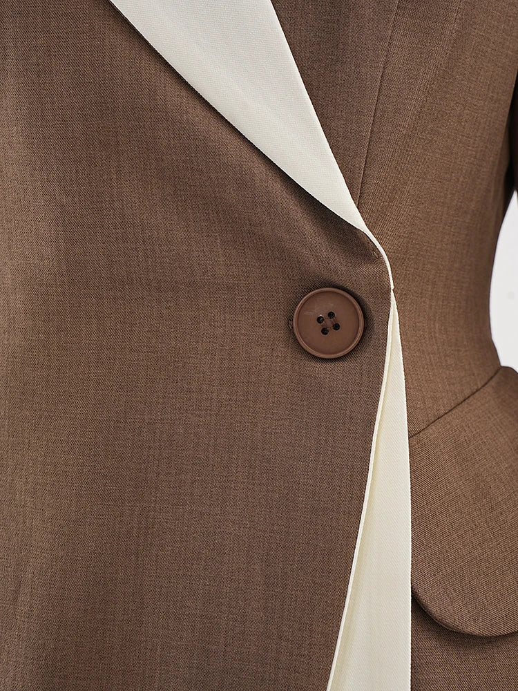 This Slanted Collar Overlapping Color Block Coat features a unique design that combines a slanted collar and overlapping color blocks for a modern and stylish look. With its high-quality materials and expert craftsmanship. this coat provides both functionality and fashion. Perfect for staying warm and making a statement.