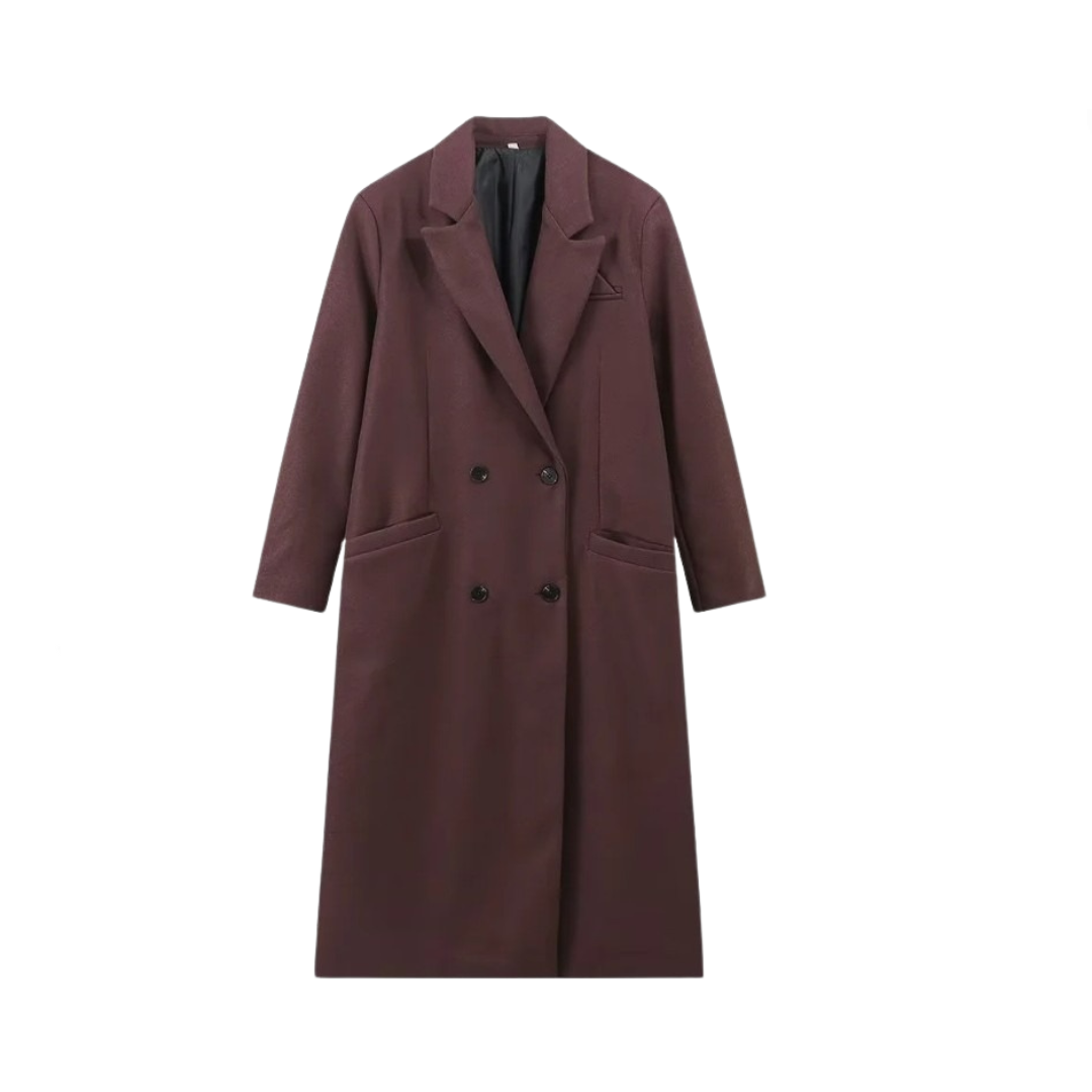 Made with padded shoulders and a classic lapel design. this coat is both stylish and practical. Perfect for colder weather. it provides warmth and comfort while adding a touch of sophistication to any outfit.