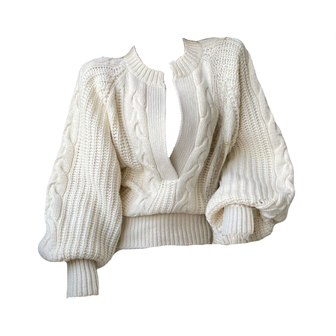 This Low V-Neck Loose Balloon Sleeved Knit Sweater is crafted with care for the highest level of comfort and style. The low V-neck adds a touch of elegance while the loose. balloon sleeves provide a trendy and relaxed look.