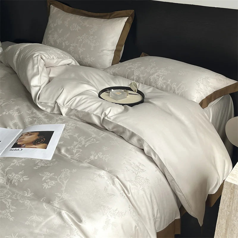 Lyocell Cotton Bed Linens Jacquard Bedding Set Sheet Pillowcase Quilt Cover Ru Queen King Size