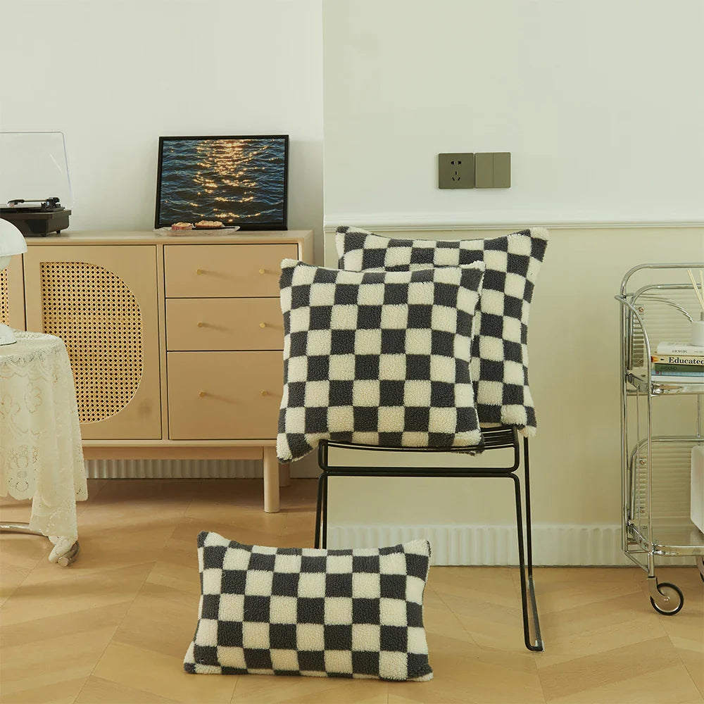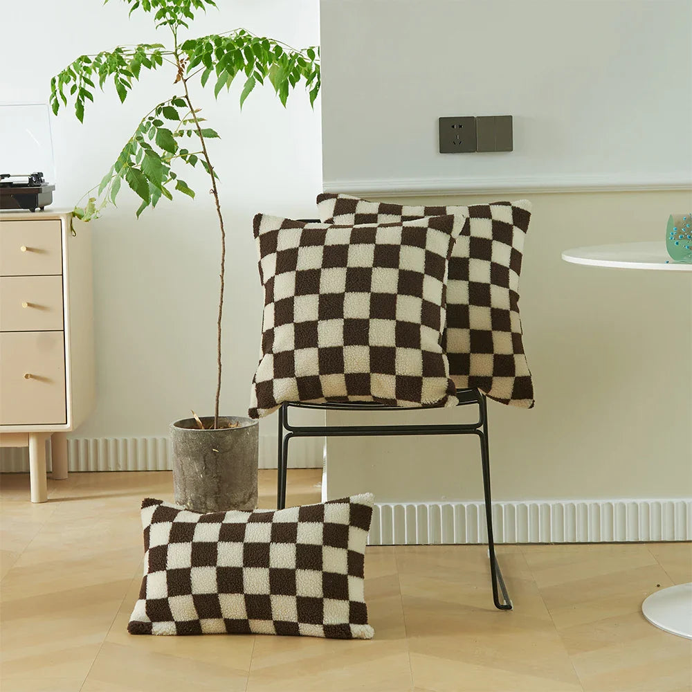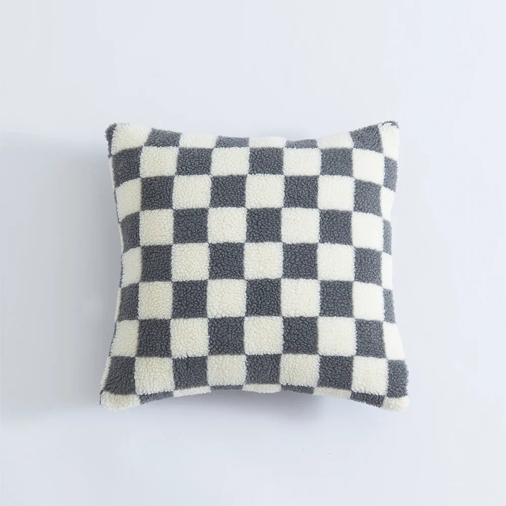 Checkered Cushion Cover Checkerboard Throw Pillowcase Short Fleece Square Pillow Cover For Home Living Room Sofa Decoration
