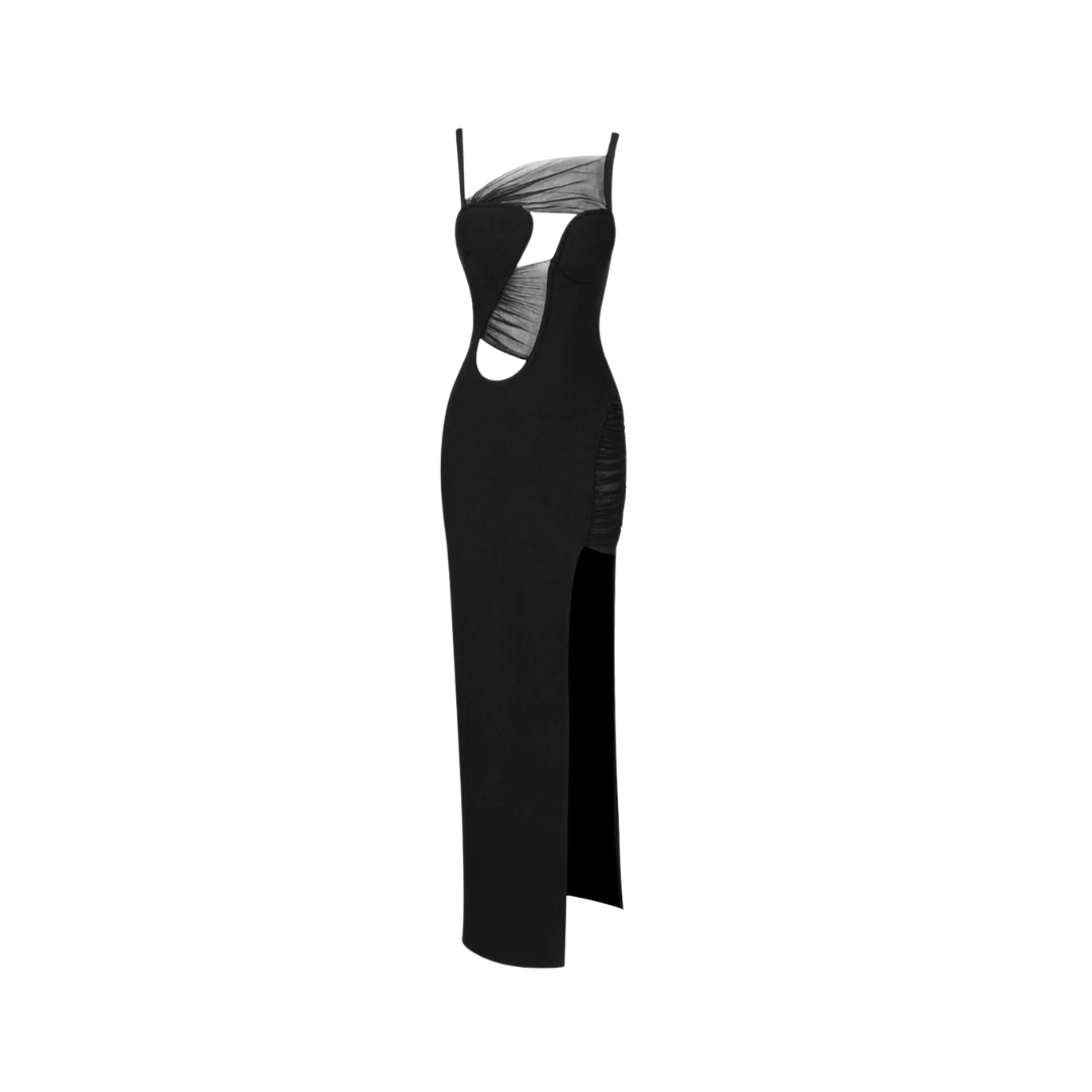 The mesh fabric and pleated design add a touch of elegance. making it perfect for any special occasion. Its irregular bandage style creates a flattering silhouette.