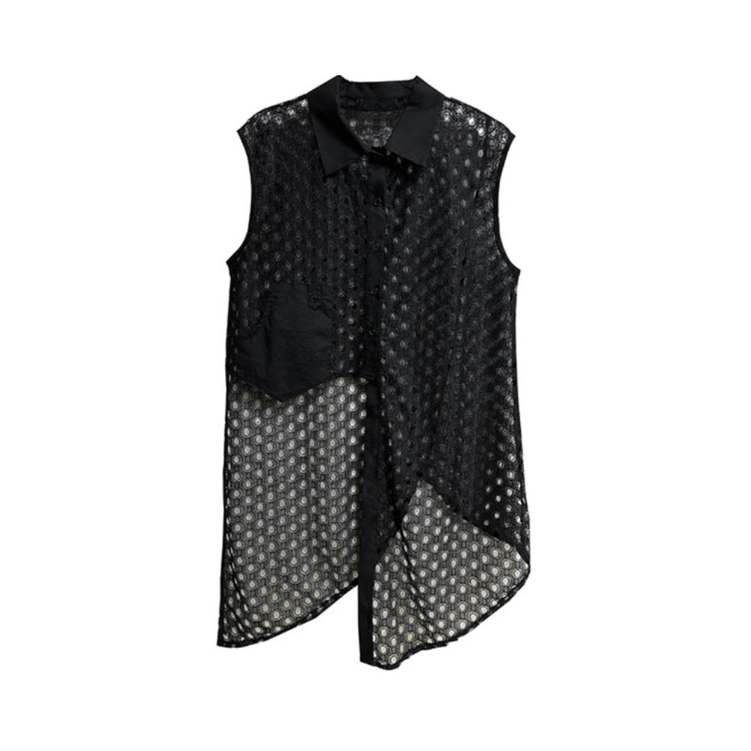 This Mesh Splicing Irregular Perspective Grid Sleeveless Shirt is designed for ultimate breathability and style. Made with mesh fabric. it offers a unique and eye-catching perspective grid design.