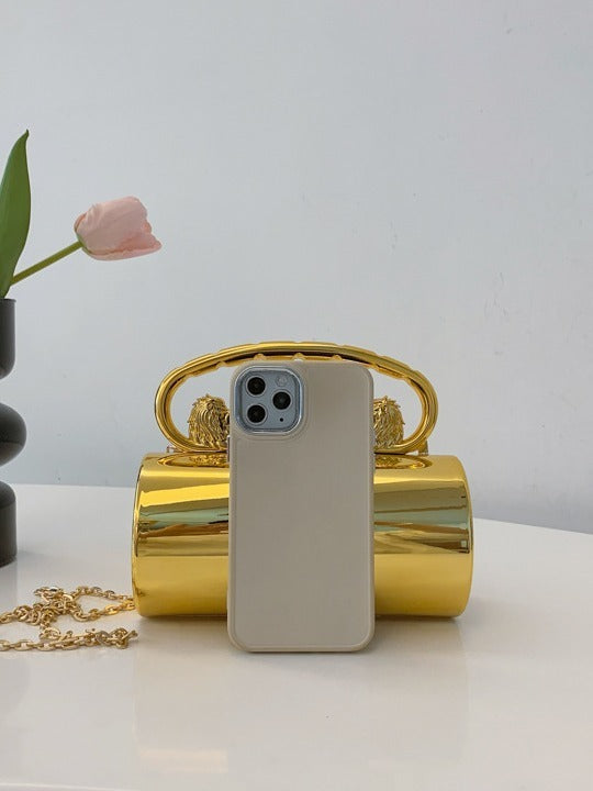 Expertly crafted with a metallic finish. this handbag is a stylish and functional accessory. Its cylindrical shape and magnetic snap closure provide easy access to your belongings. while adding a touch of elegance to your ensemble.