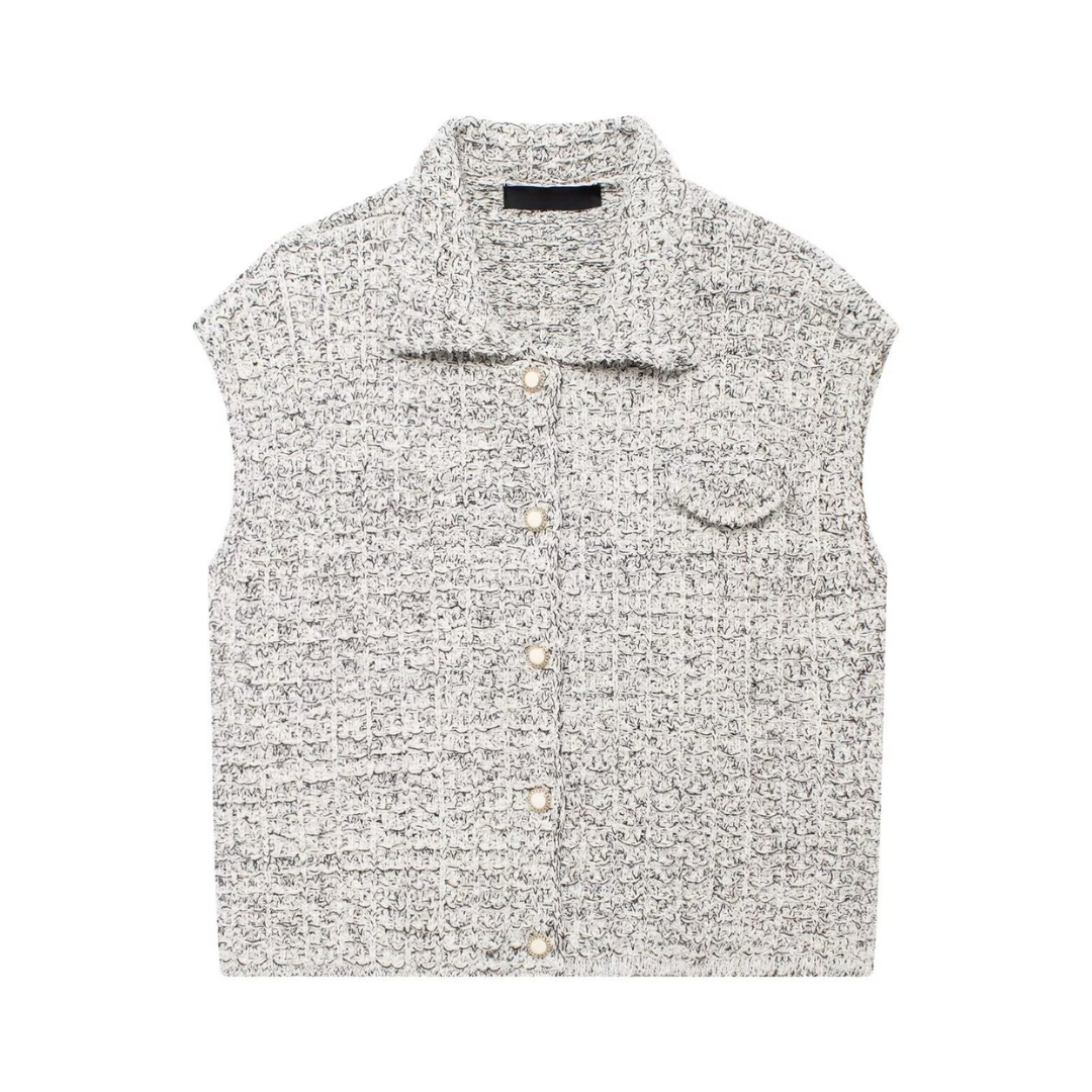 Introducing our Metallic Grey Textured Knit Vest. expertly designed for both style and functionality. Made with a unique metallic grey textured knit. this vest adds a touch of sophistication to any outfit. Its versatile design allows for effortless layering and its quality material ensures long-lasting wear. Upgrade your wardrobe with this must-have piece.