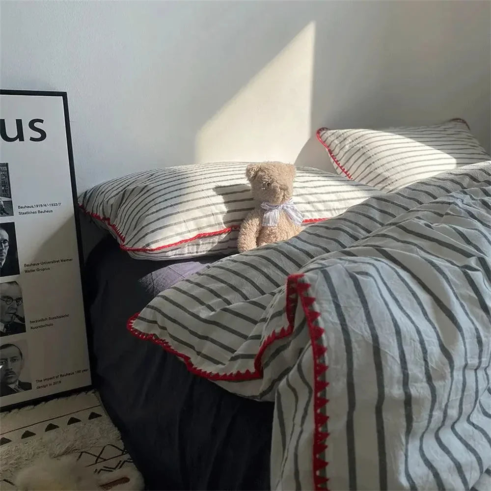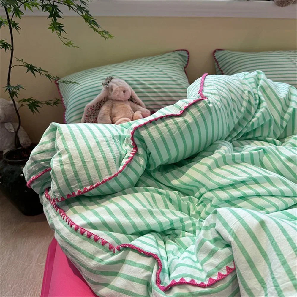 Minimalist Style Green Strip Bedding Sheet Ins Nordic Duvet Cover Set Home Luxury Bedding Set Bed Sheets Comfortable Bedspread