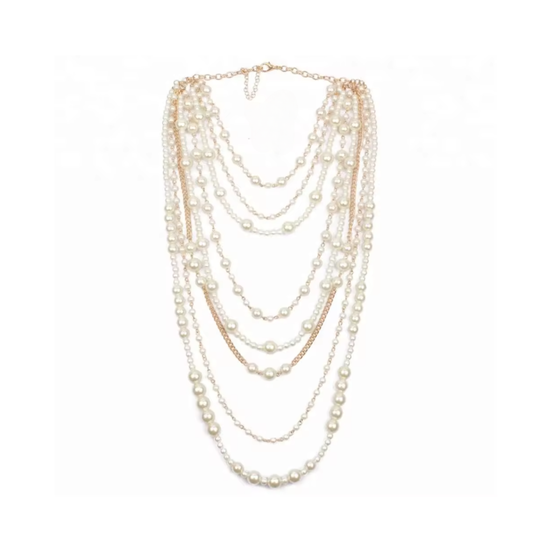 Adorned with delicate layers of pearls. this necklace exudes luxury and style. Perfect for any occasion. this timeless piece will elevate your outfit and make you stand out from the crowd.