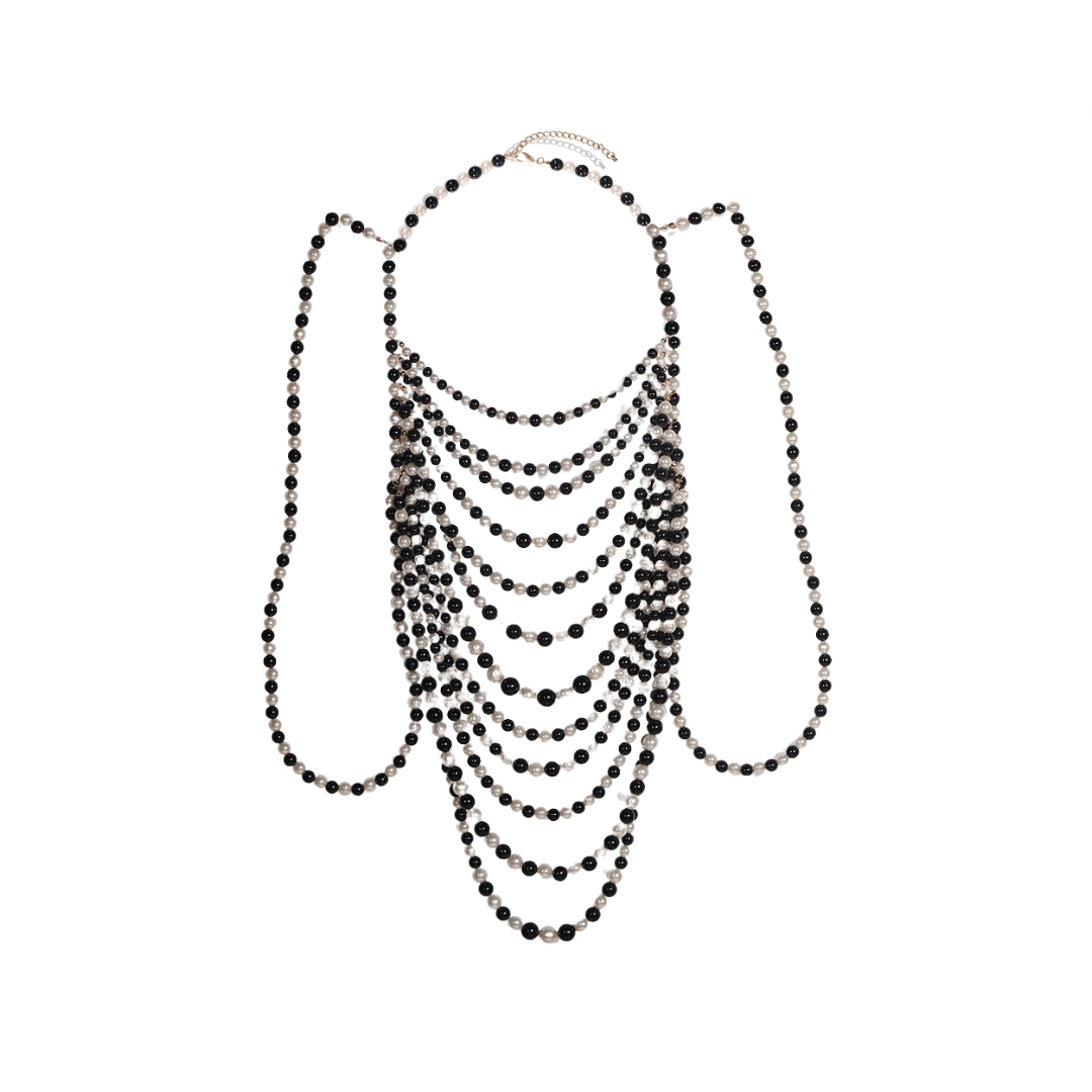 This multi layered chain beaded necklace adds a touch of elegance to any outfit. Handcrafted with precision. the layers of delicate chains and intricate beads create a unique and eye-catching design.