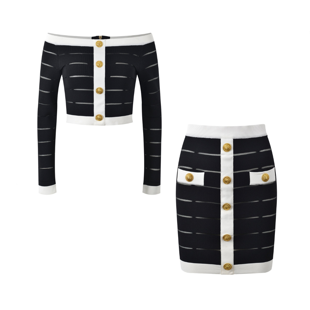 This Off Shoulder Knitted Top + Hip Hugging Skirt Set is perfect for a chic and stylish look. The off-shoulder design adds a touch of elegance. while the hip-hugging skirt accentuates your figure for a flattering fit.