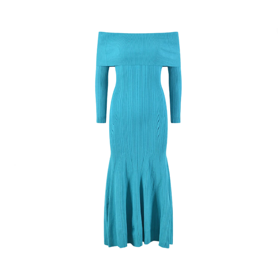 This Off Shoulder Pleated Knitted Dress is designed with medium stretch fabric and long sleeves for a comfortable and stylish fit. The pleated detailing adds a touch of elegance. while the off shoulder design adds a trendy. modern twist.