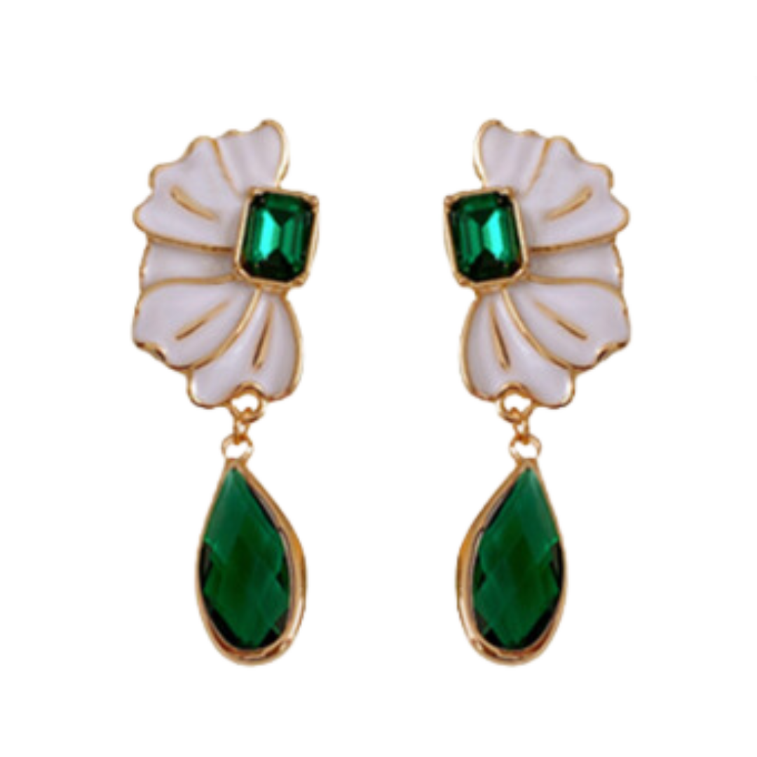 These stunning Oil Dripping Flower Emerald Water Drop Earrings feature a unique design that showcases the beauty of emerald gemstones. The oil dripping effect adds a touch of elegance and sophistication.