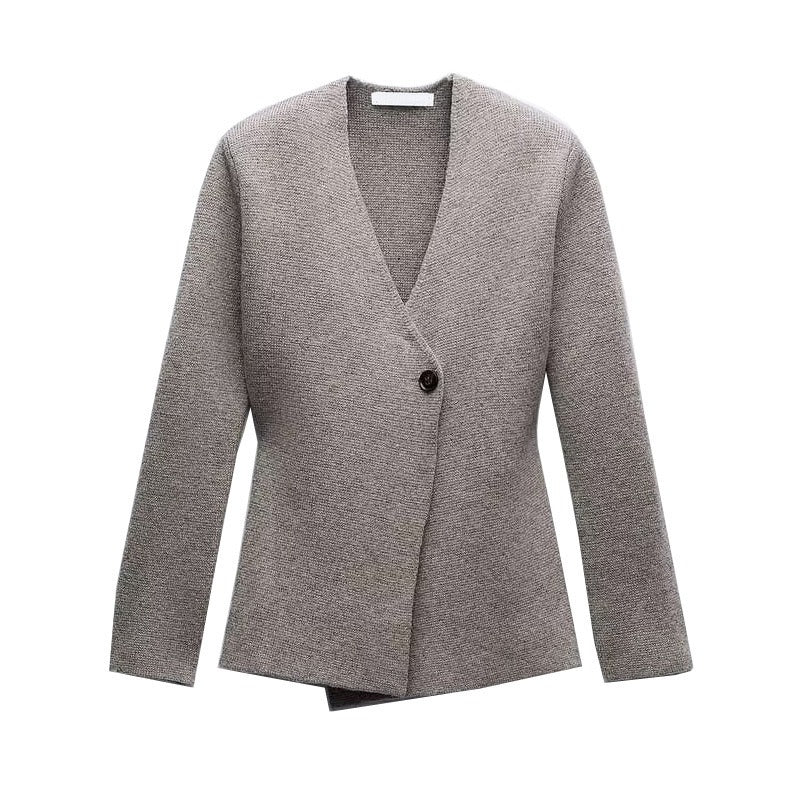 With its soft wool knit material and convenient one-button closure. this jacket is both comfortable and stylish. Perfect for any occasion. it provides both warmth and sophistication.