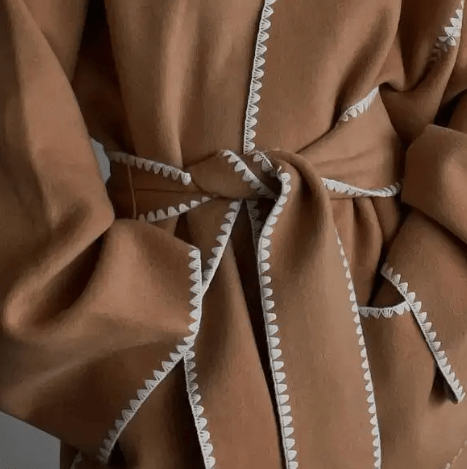 Overstitched Belted Kimono Style Jacket