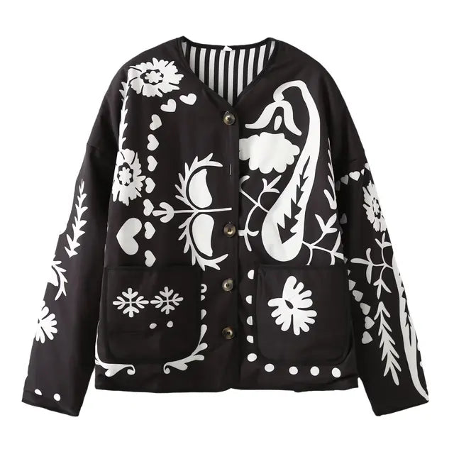 Stay warm and stylish with our Padded Floral Print Vintage Jacket. Featuring a padded design and beautiful floral print. this jacket not only provides comfort but also adds a touch of nostalgia to your wardrobe.