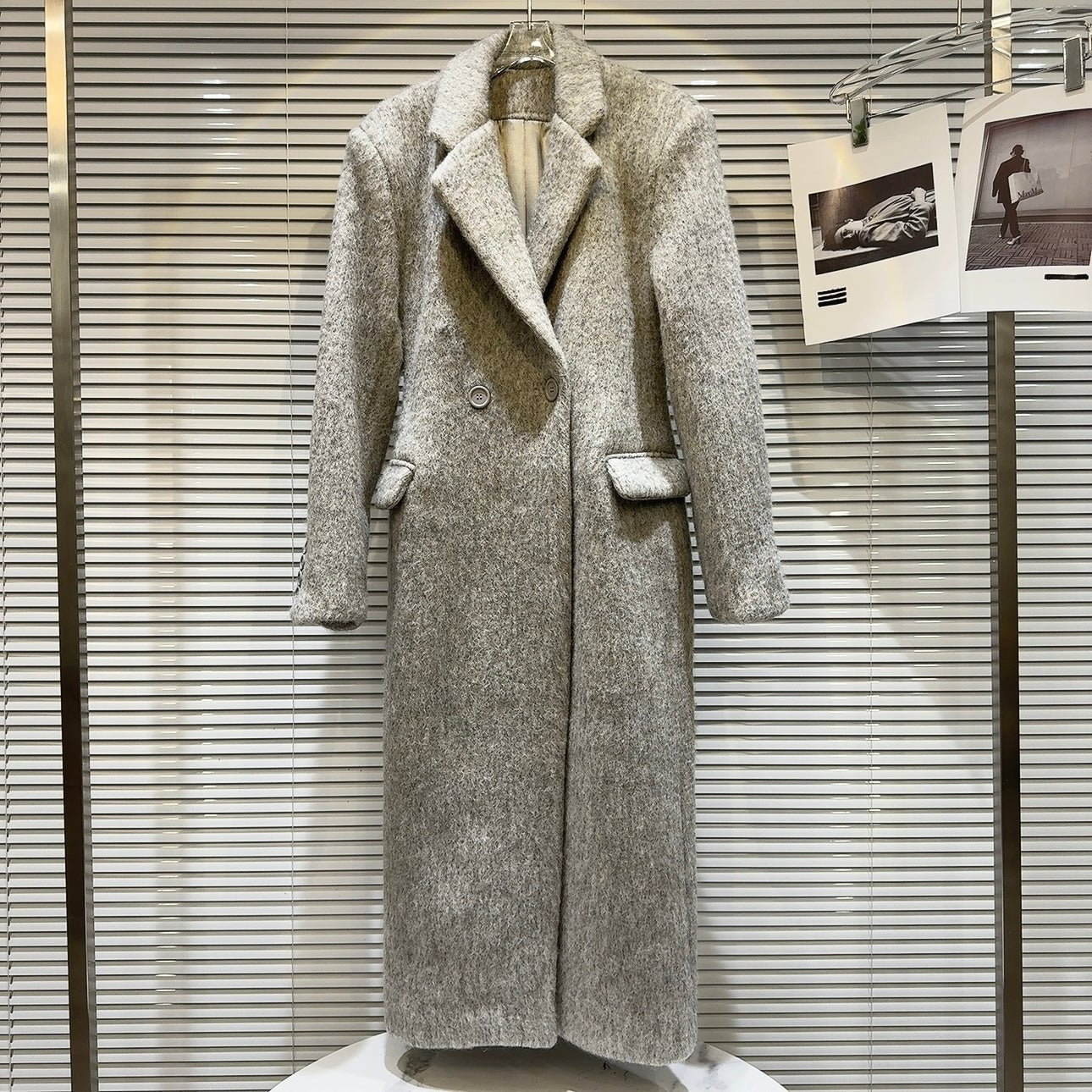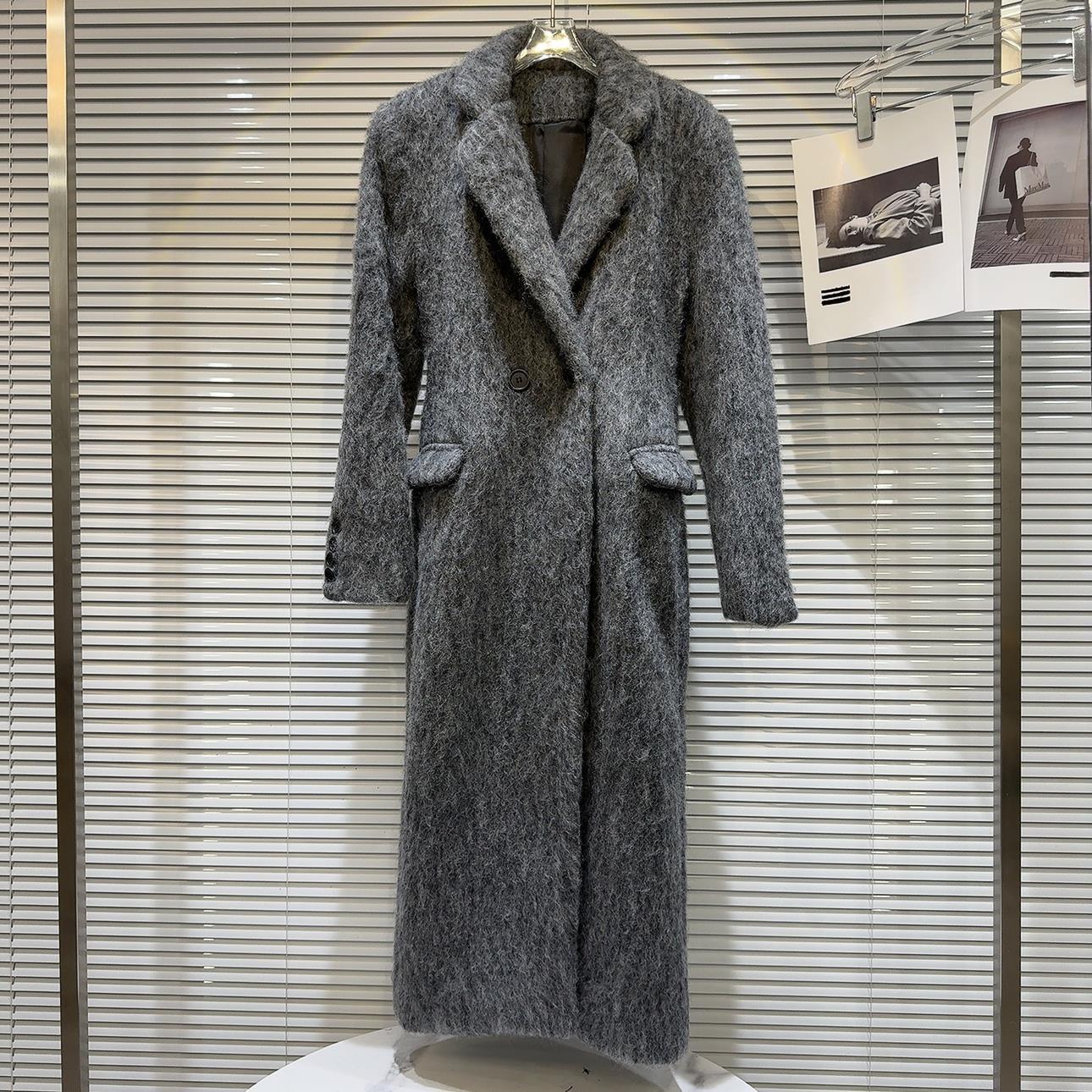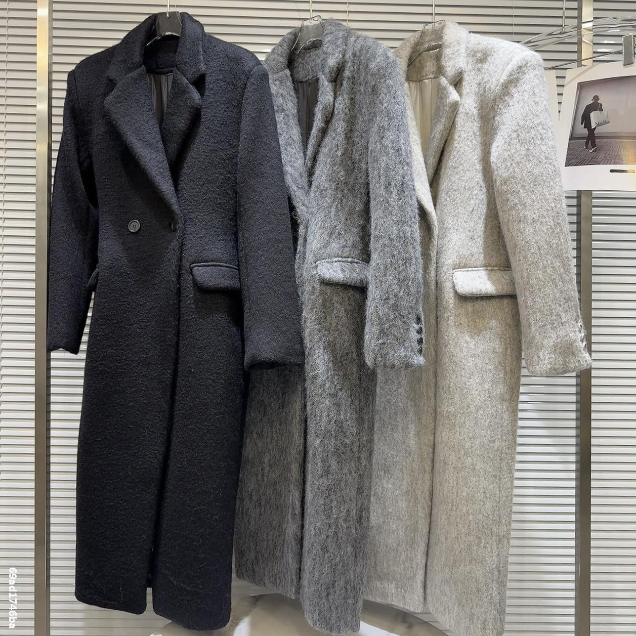 GetSpring Women Wool Coat Autumn Winter Shoulder Padded Full Sleeve Ladies Woolen Jacket Fashion Loose Long Warm Overcoat
