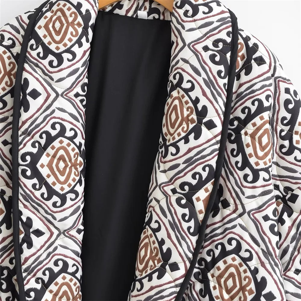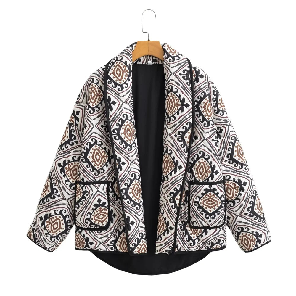 Expertly crafted with a paisley print. this quilted jacket is both stylish and practical. The front pockets provide convenience while the quilted design offers warmth and comfort. Elevate your wardrobe and stay cozy on colder days with this must-have piece.