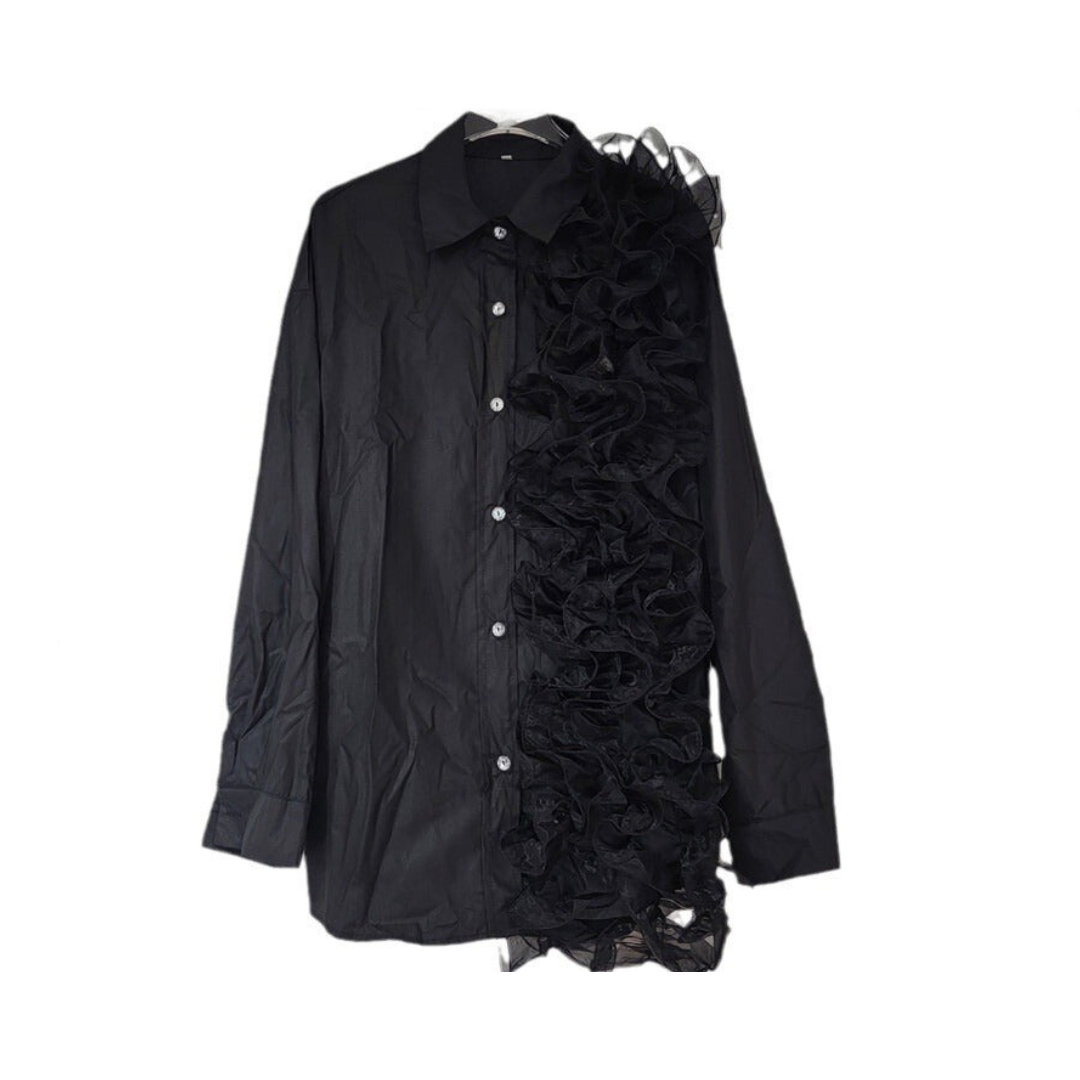 Experience sophistication and style with our Patchwork Mesh Ruffled Edge Long Sleeve Blouse. Made with exquisite craftsmanship. this blouse features elegant patchwork mesh and delicate ruffled edges for a timeless and feminine look.