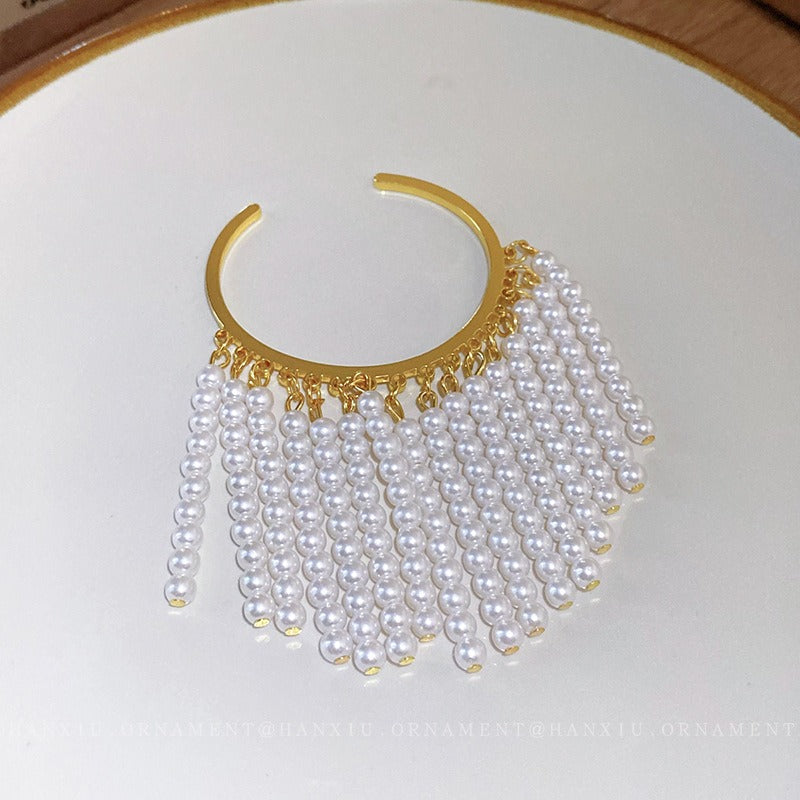Expertly crafted and elegantly designed. the Pearl Tassel Palace Style Open Bracelet adds a touch of sophistication to any outfit. Made with faux pearls and intricate tassel details. this bracelet exudes luxury and charm.