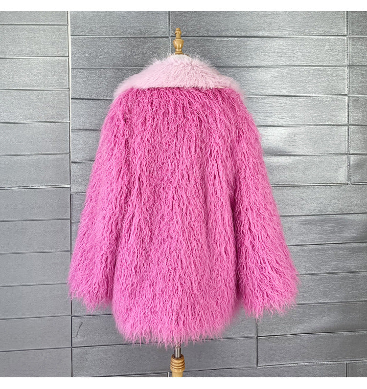 Made from faux fur. the patchwork design adds texture and depth to the coat. Keep warm while making a statement with this stylish coat.