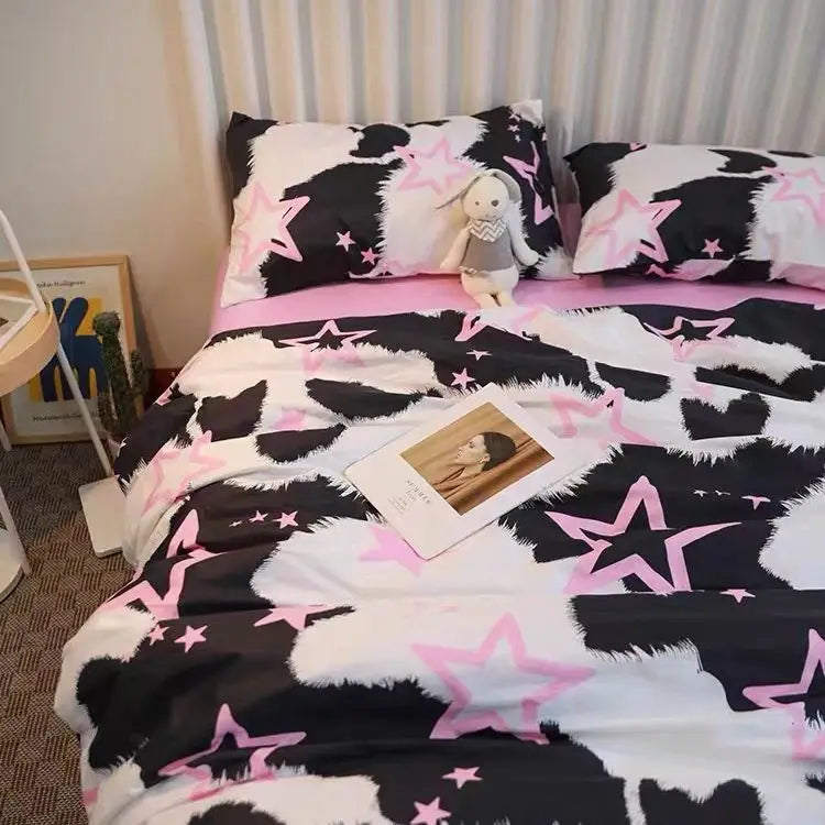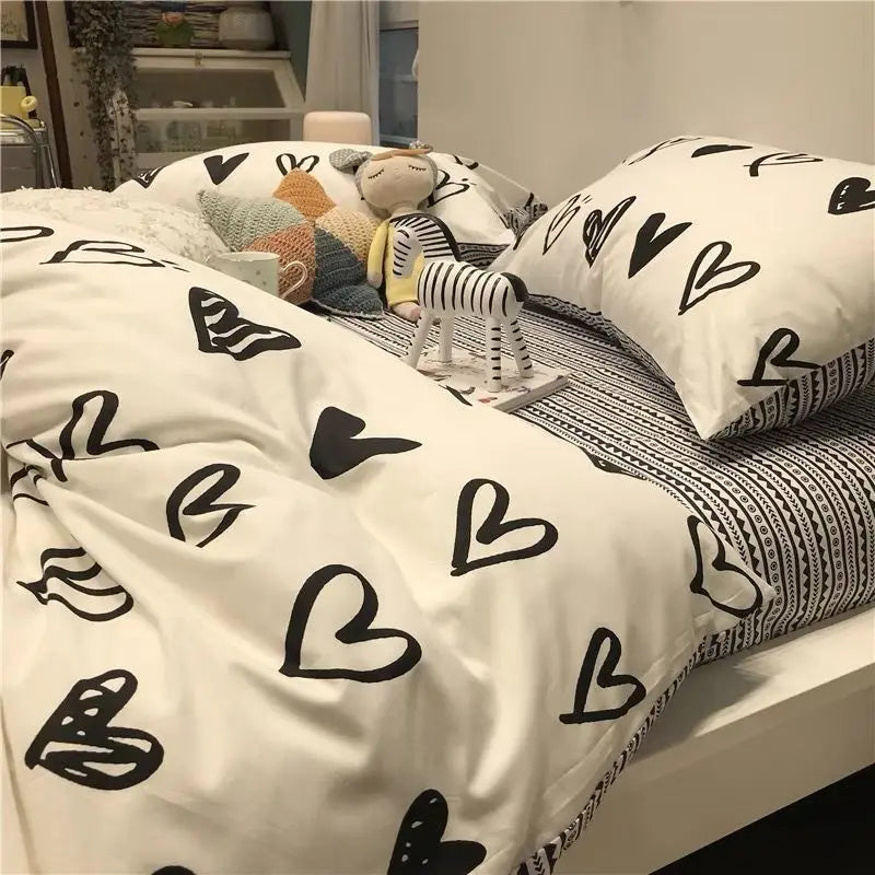 Pink Sweetheart Bedding Set Fashion Heart Single Double Queen Size Flat Sheet Duvet Cover Pillowcase Girl Gift Home Textile
