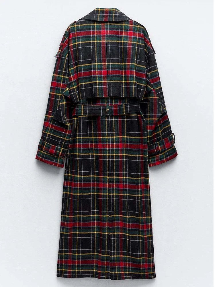 Plaid Belted Loose Trench Coat
