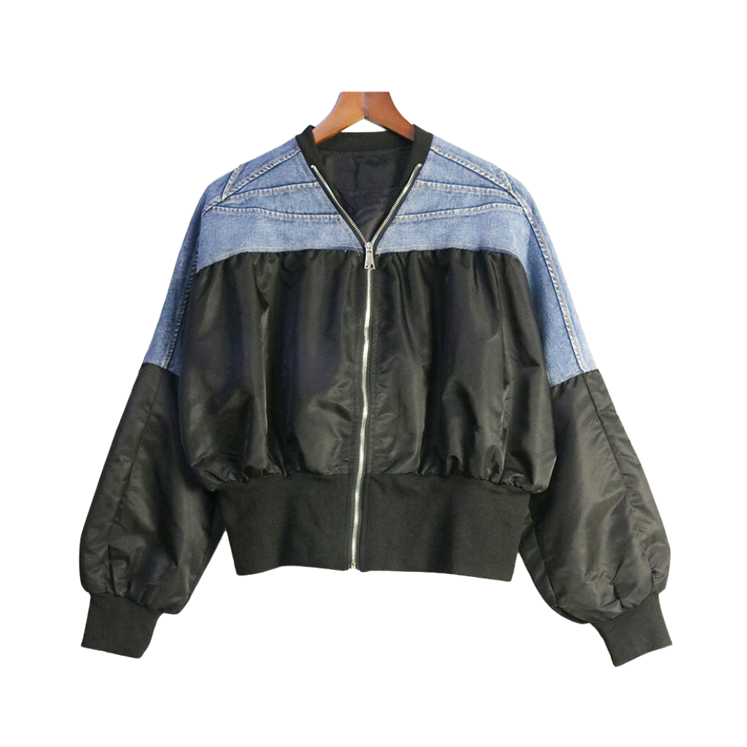 This stylish jacket features pleated detailing and a color-block design. adding a touch of sophistication to any outfit. Its loose fit provides both comfort and style. perfect for any fashion-forward individual.