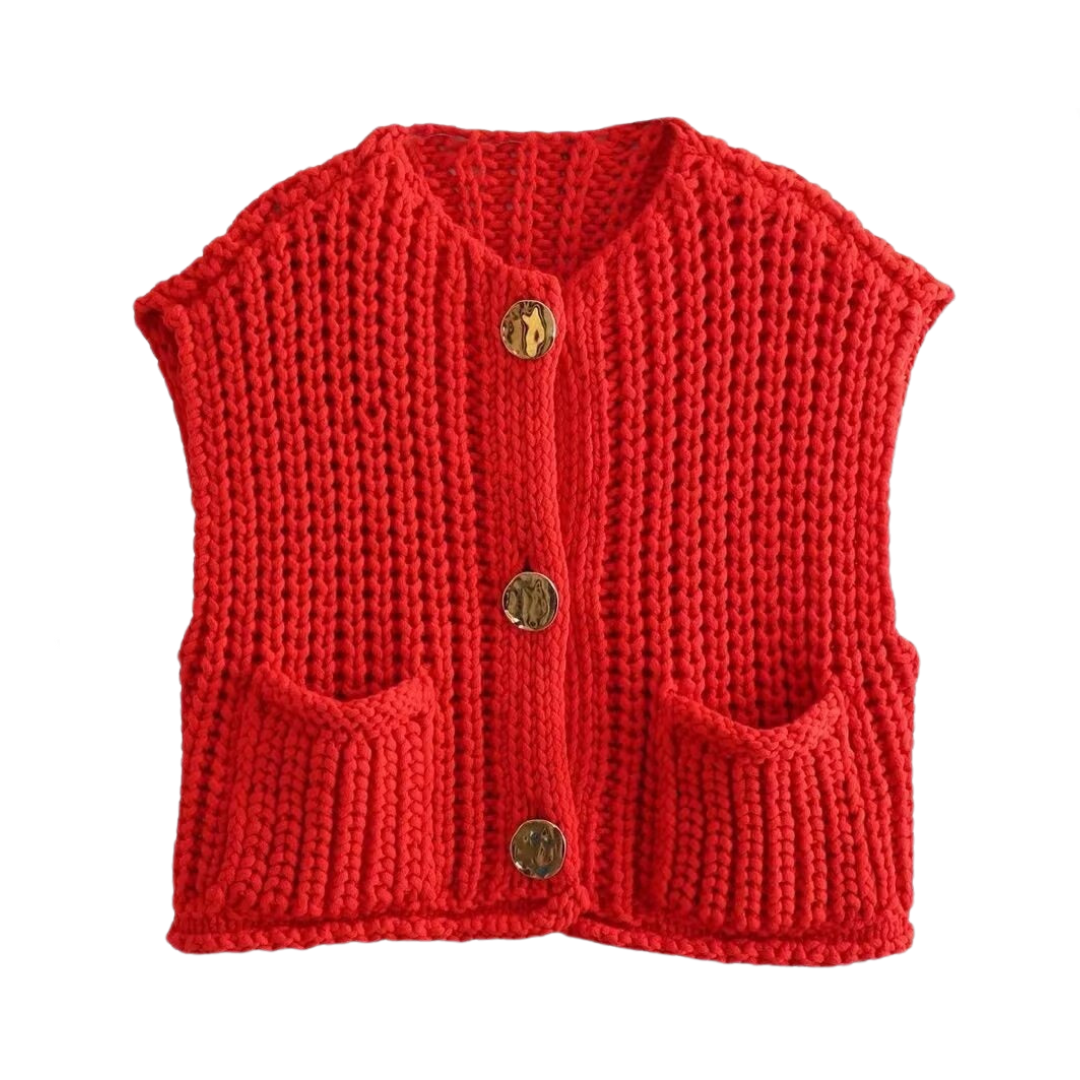 Made with soft knit fabric. this vest features a modern cropped design and convenient pockets. Perfect for any season. this versatile piece adds a touch of sophistication to any outfit.