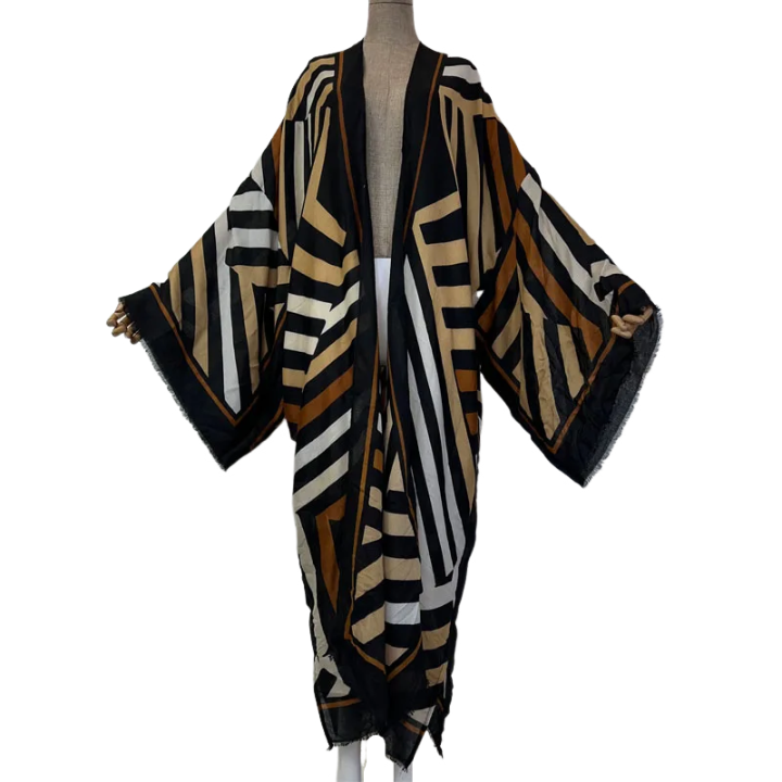 This Chic Geometric Kimono Cardigan is the perfect addition to any wardrobe. Its chic and modern design adds a touch of style to any outfit. while its geometric pattern adds a unique and trendy element. Made with high-quality material. this cardigan is both comfortable and fashionable. Elevate your look with this must-have piece.