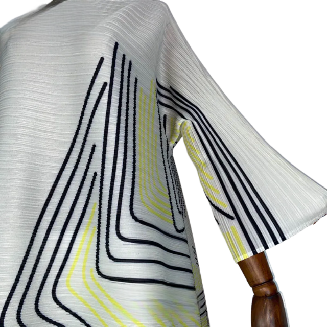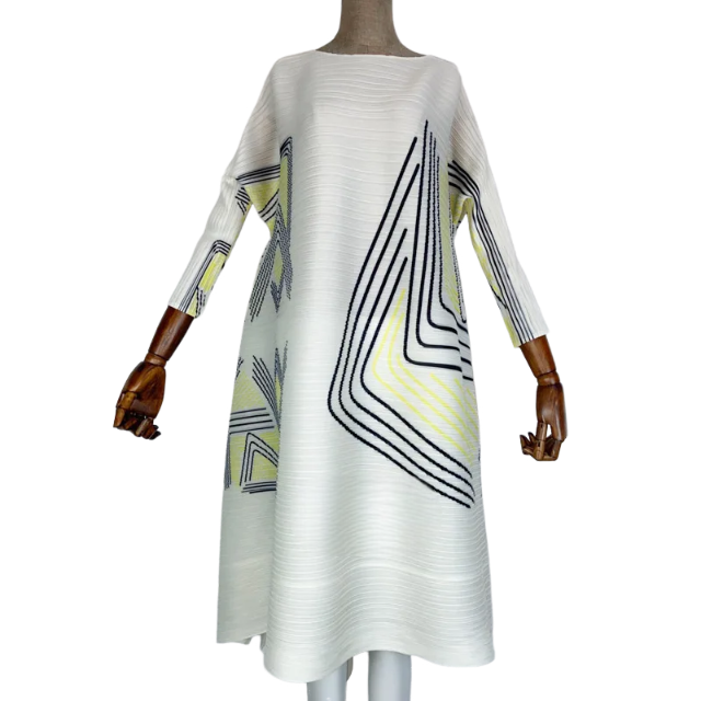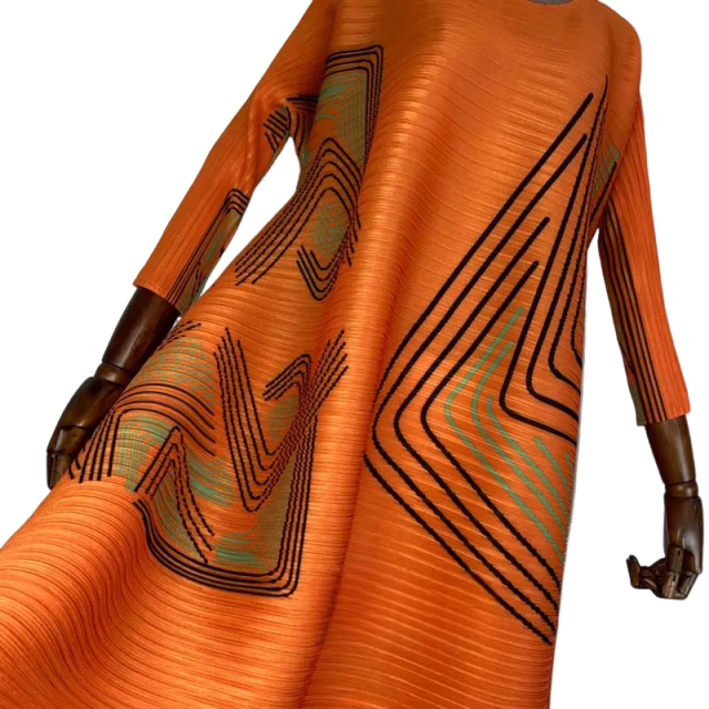 Expertly crafted. this Chic Geometric Pleated Dress features a stunning design that is both eye-catching and flattering. Its unique pleats add dimension to the geometric pattern. creating a timeless look that is perfect for any occasion. Made with high-quality materials. this dress offers both style and comfort. making it a must-have for your wardrobe.