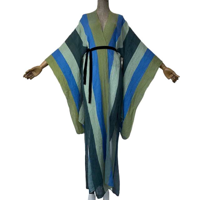 Introducing our Chic Pleated Striped Kimono Cardigan. a stylish addition to any wardrobe. Designed with elegant pleats and modern stripes. this cardigan exudes sophistication. Perfect for any occasion. this versatile piece will elevate any outfit. Made with high-quality materials for long-lasting wear.