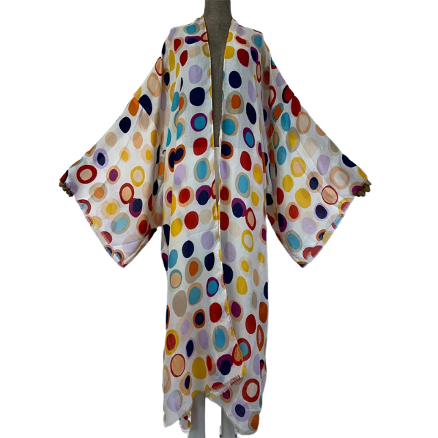 Introducing the WINI Colorful Cover up Kimono Cardigan. Made from high-quality fabric. this cardigan features vibrant colors to make a statement. Perfect for layering and adding a pop of color to any outfit. Pre-order now and elevate your wardrobe with this must-have piece.
