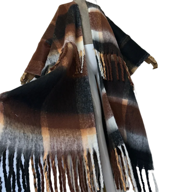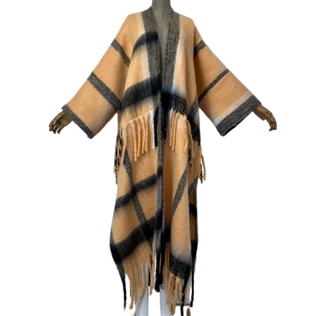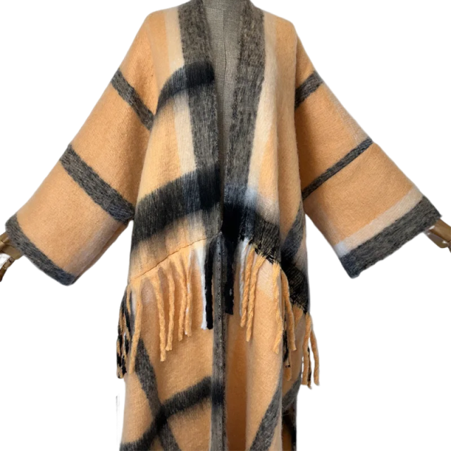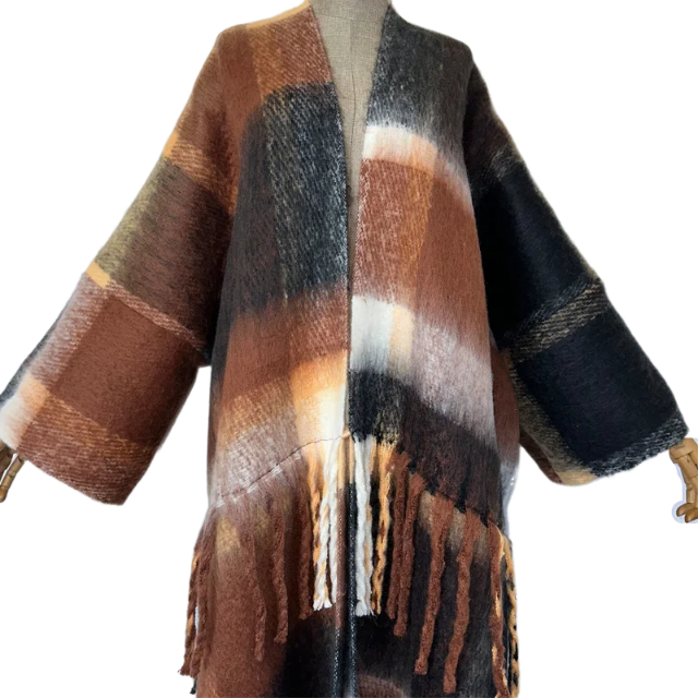 Update your wardrobe with our cozy plaid tassel cardigan. Made with soft and warm fabric. this cardigan is perfect for colder days. The plaid pattern adds a touch of style and the tassel detailing adds a fun and trendy touch. Stay warm and fashionable with our cozy plaid tassel cardigan.