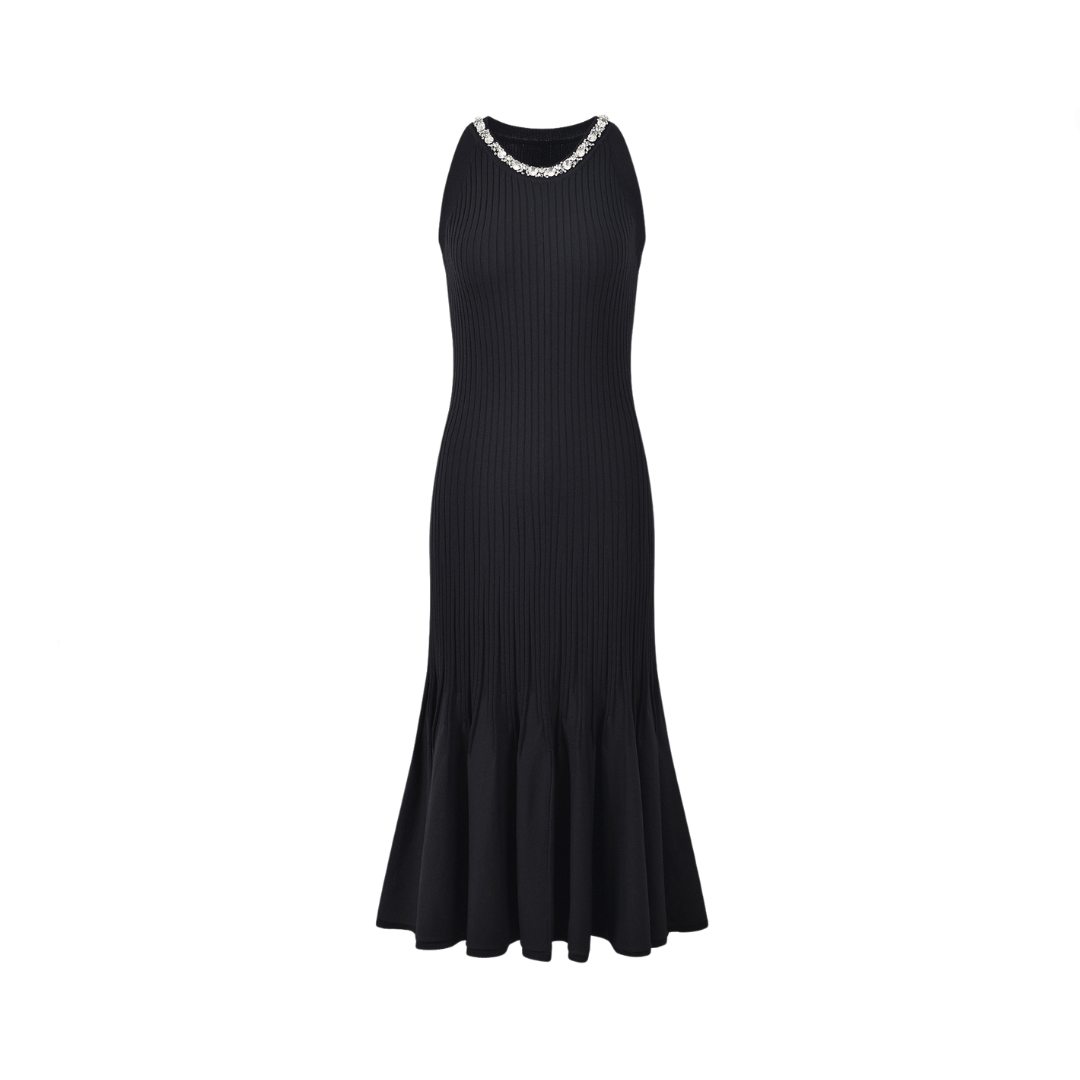 This stunning Diamond Studded Round Neck Fish Tail Knitted Dress features elegant diamond embellishments and a figure-flattering fish tail design. Expertly crafted for comfort and style. this dress is perfect for special occasions or adding a touch of glamour to your wardrobe.