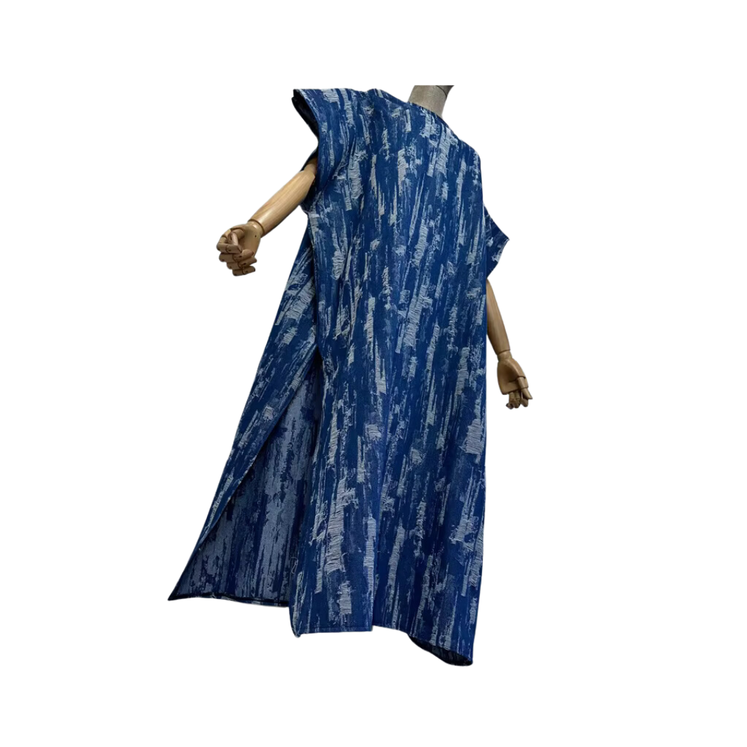 This Distressed Denim Kaftan Dress combines style and comfort with its unique distressed design. Crafted from high-quality denim. this dress provides a flattering fit that is perfect for any occasion. With its versatile design. this dress is a must-have addition to any wardrobe.