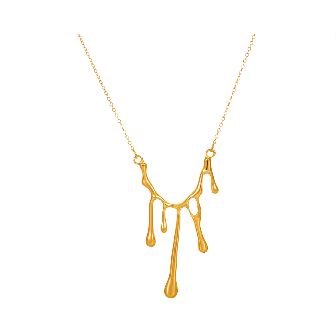 This Dripping Lava Pendant Necklace is a stunning accessory that will elevate any outfit. Made with precision and expertise. the pendant features a unique dripping lava design that adds a touch of elegance and intrigue.