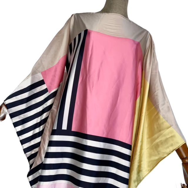 Introducing our Elegant Silk Kaftan Dress. a luxurious addition to your wardrobe. Made with smooth and soft silk. this dress exudes elegance and comfort. Perfect for any occasion. its timeless design and high-quality material will make you feel confident and stylish. Elevate your fashion game with our Elegant Silk Kaftan Dress.