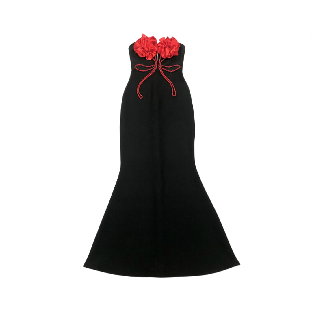 Elevate your evening look with our Flower Chain Strapless Long Evening Dress. The strapless design adds a touch of elegance. while the flower chain detailing adds a unique. feminine touch.