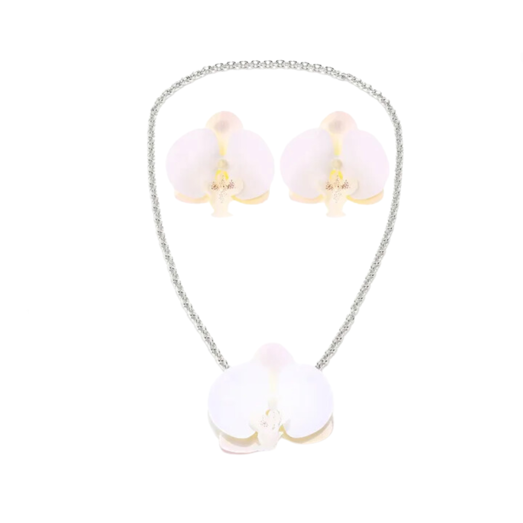This elegant flower pendant necklace and earrings set is a must-have accessory for any outfit. The intricate design showcases a delicate flower. adding a touch of femininity to your look.