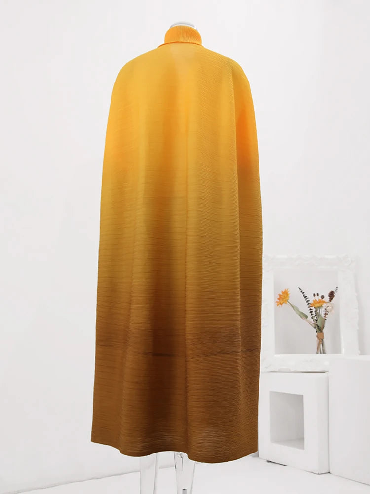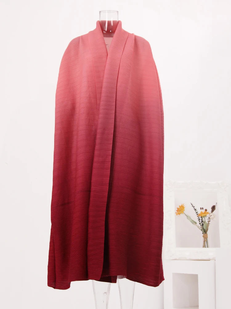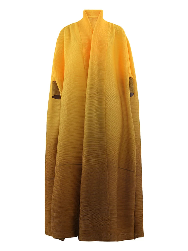 This Gradient Batwing Sleeve Pleated Trench Coat is designed for both style and practicality. The gradient design adds a unique touch to the classic trench coat. while the pleated details provide a flattering silhouette.