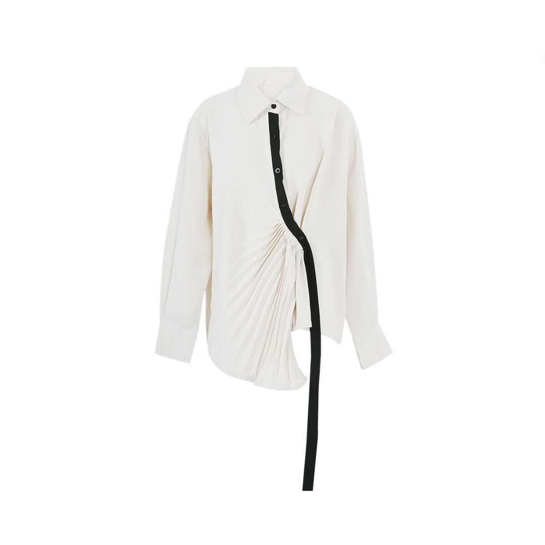 The unique pleated design elevates this shirt. giving it a stylish and modern look. With long sleeves. it will keep you warm and comfortable in any season.
