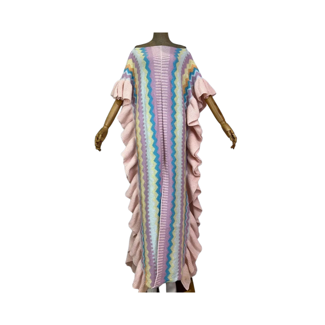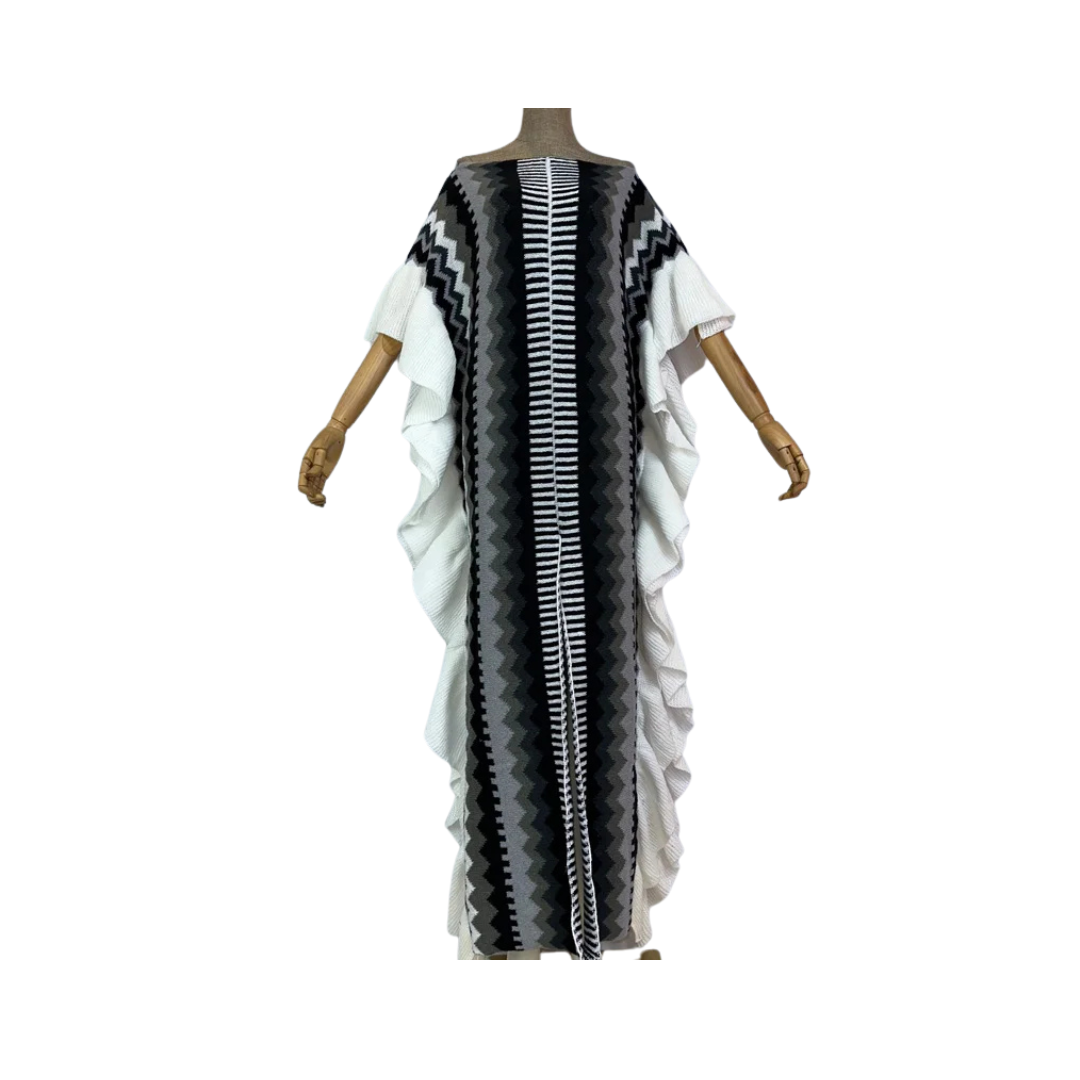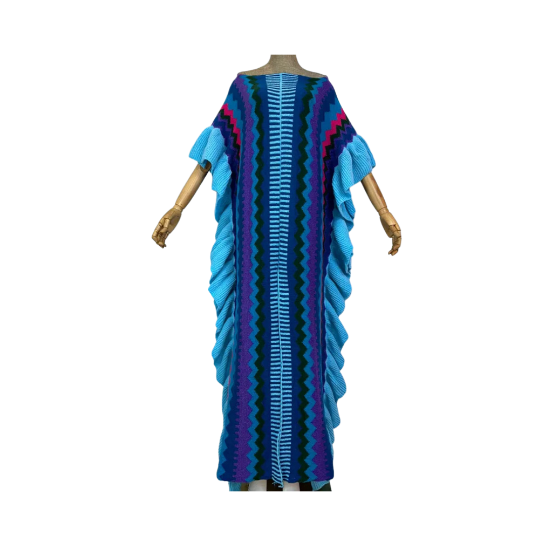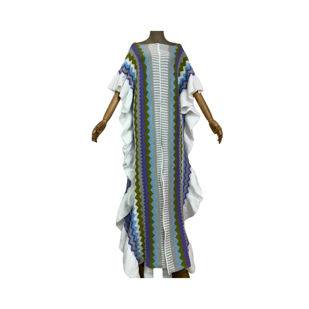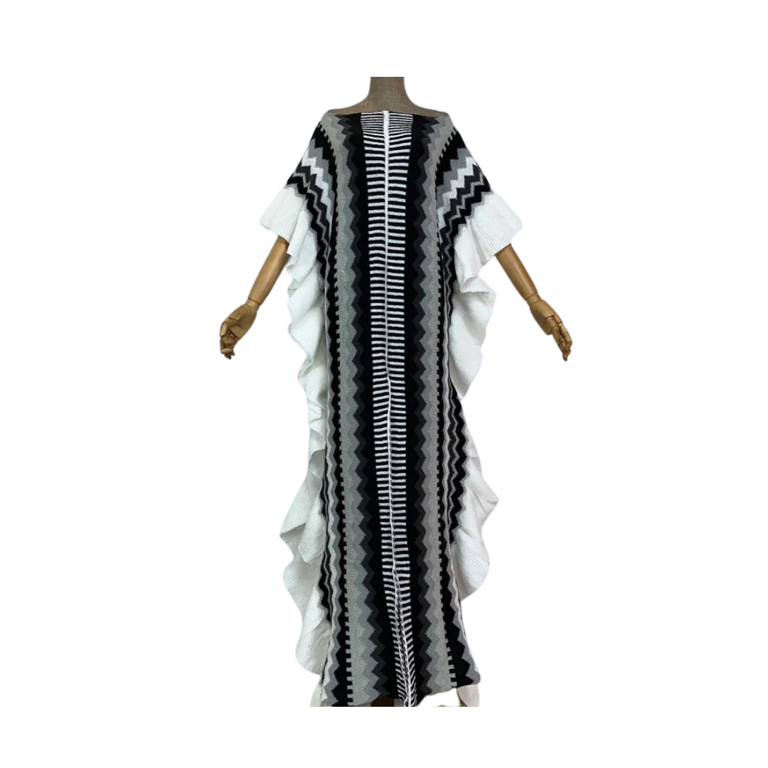 Achieve effortless style and comfort with our Ruffled Knit Kaftan Dress. Featuring elegant ruffles. this dress is perfect for any occasion. Made with high-quality fabric. it ensures both fashion and comfort. Upgrade your wardrobe with this timeless piece.