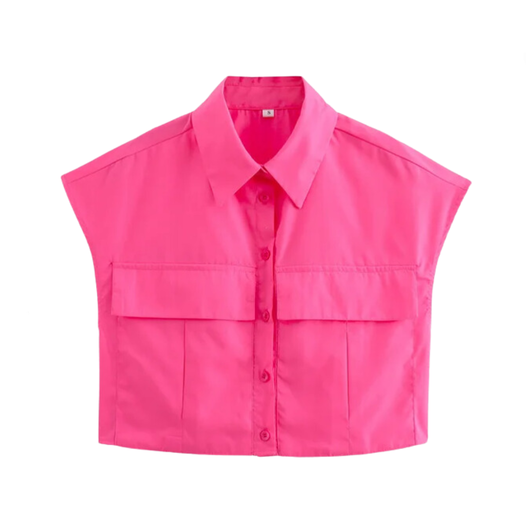 Crafted with a sleeveless design and convenient flip pockets. this top is perfect for any occasion. The solid color adds a touch of sophistication while the flip pockets provide practicality.