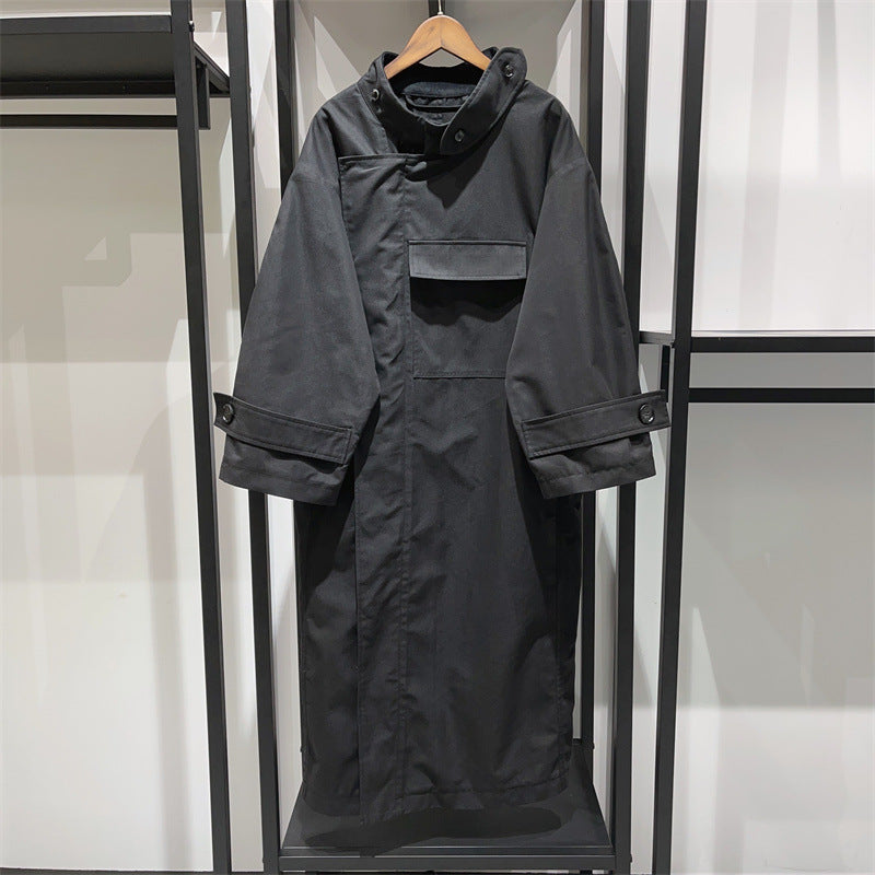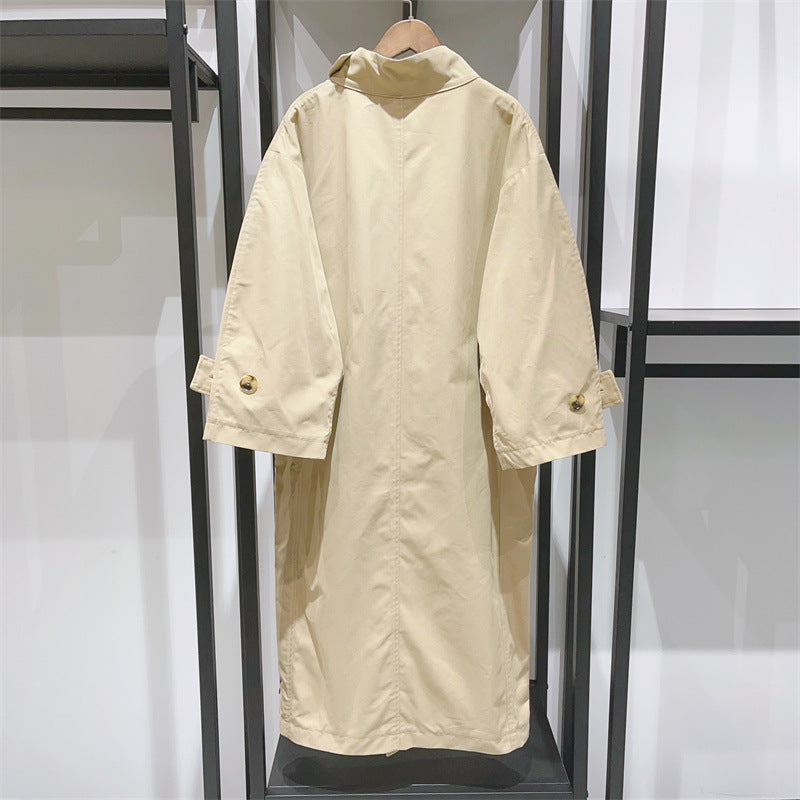 With its stand collar design and long sleeves. this trench coat offers a timeless and elegant look. Its straight tube shape provides a flattering fit. making it a versatile addition to your wardrobe.